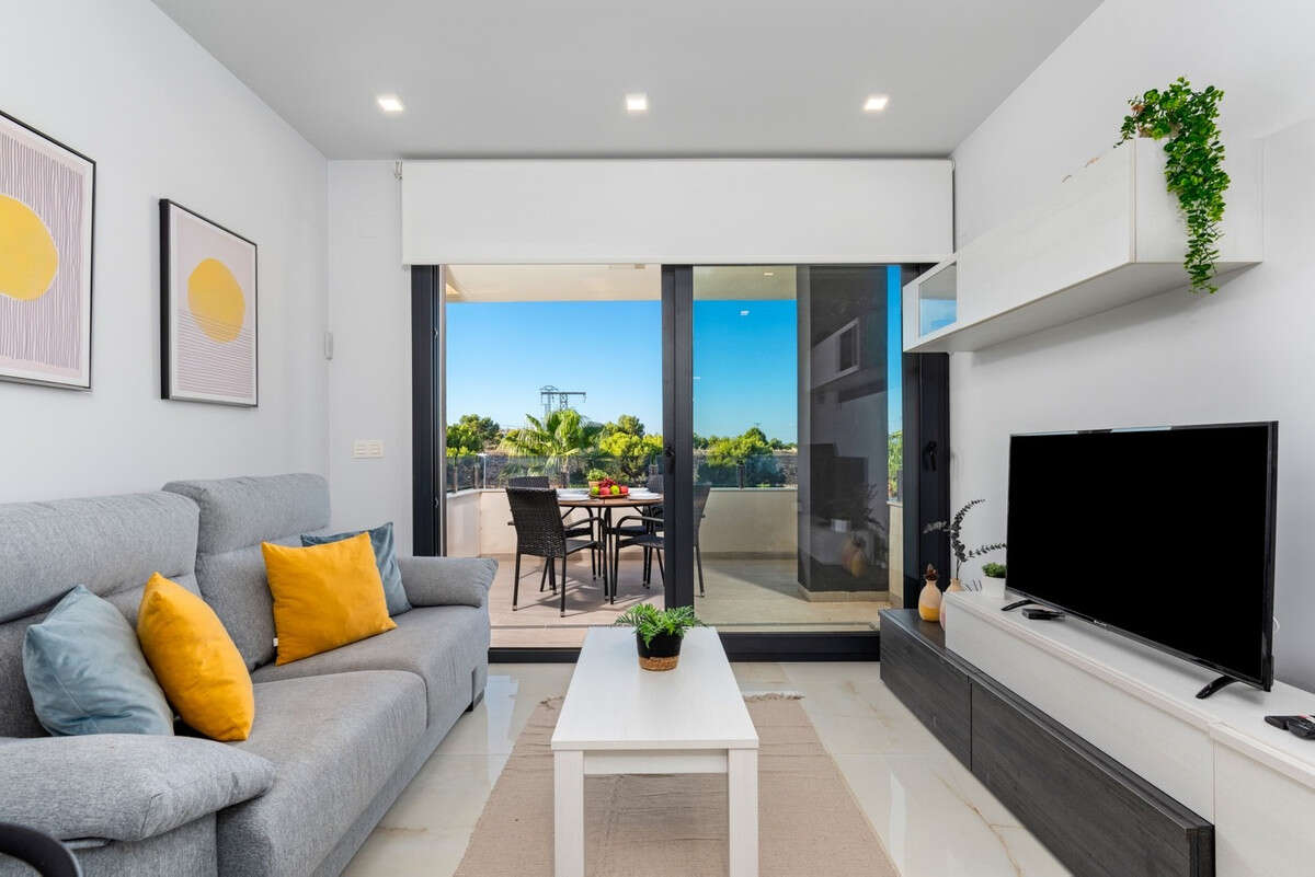 We present to you a beautiful and new 2 bedroom apartment in the popular Amanecer VI gated complex in Los Altos. The property with southwest exposure, located on the second floor with elevator, equipped with high quality furniture, modern household appliances, air conditioning and underground parking with storage room.The apartment consists of a bright living room with dining area, open kitchen and two double bedrooms with built-in wardrobes. The master bedroom has an en suite bathroom and both bathrooms have underfloor heating. The balcony overlooking the communal pool and garden invites you to relax outdoors.Residencial Amanecer VI offers a safe and quiet environment with large green areas, boules courts and water attractions. Ideally located 750 m from a supermarket and a few minutes walk from the restaurants and bars of Via Park III, just a 10 minute drive from the beaches, Zenia Boulevard and world class golf courses such as Villamartin and Las Ramblas.Ready to move in!