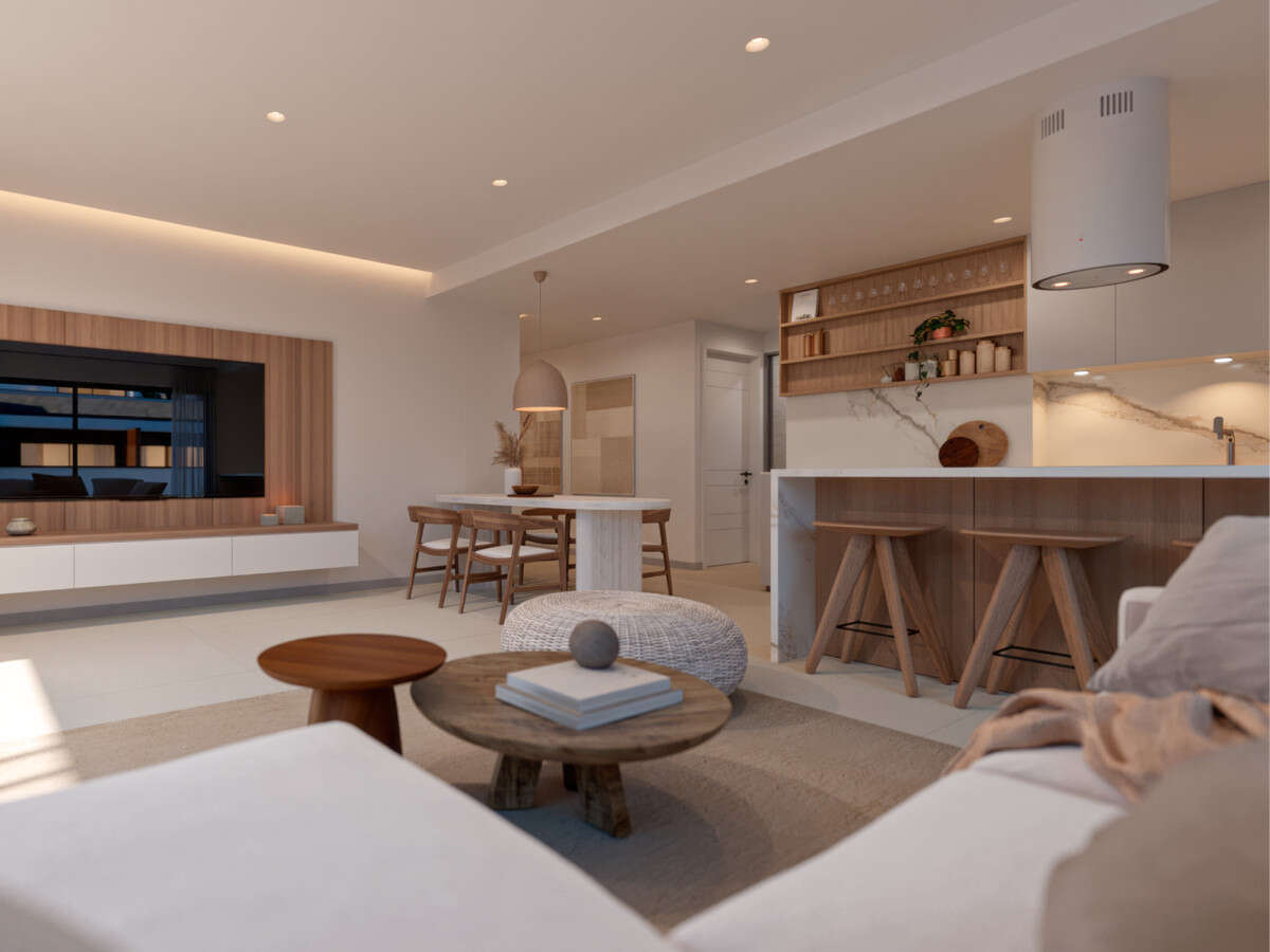 Spacious integrated living rooms and kitchens rooms and sunny terraces.