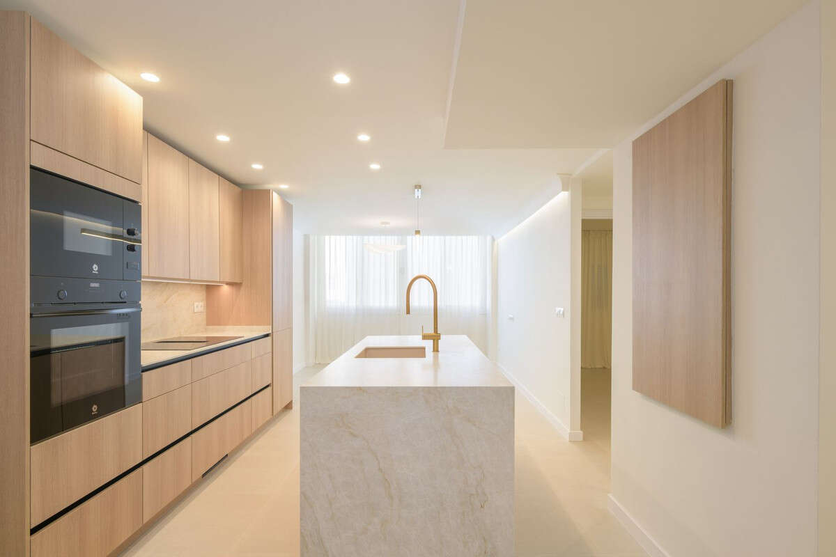 Kitchen open to the living room, creating an open-plan and very bright space, perfect for socializing and enjoying urban life.