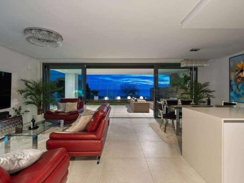 The true eye-catcher is the view. From your terrace, your garden, and your private pool, you enjoy breathtaking panoramic sea views that give this home a truly exceptional character. During the day you experience sunshine, space, and peace and in the evening, the horizon delivers unforgettable colours that never get old. The property features a spacious private garden with natural grass, divided into two areas, and a private swimming pool that blends perfectly into the setting. This is outdoor living at its finest: lounging, dining, swimming, and relaxing, always surrounded by that spectacular view. The large terrace is partly covered, offering the best of both worlds: plenty of sun around the pool and in the garden, while also providing a shaded area where it stays comfortably cool. Indoors, you benefit from the same comfort thanks to the sheltered design. This is the kind of home where you step outside with your morning coffee and think: this is exactly where I want to be.