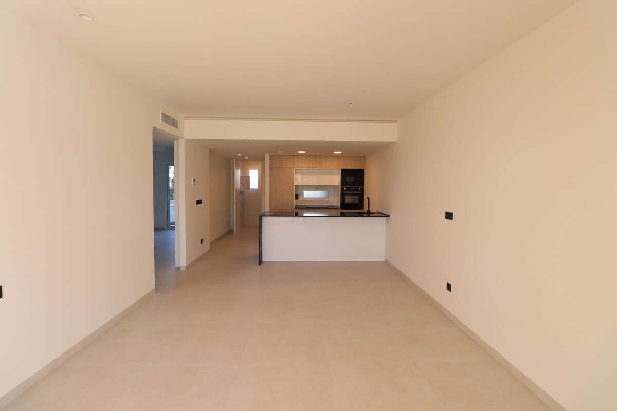 This South Facing Two Bedroom Ground Floor Apartment in El Raso, Guardamar, is located in a desirable and modern residential area, just a five-minute drive from supermarkets and only a few minutes' drive to a great selection of bars and restaurants. The beautiful nearby beaches can be reached within an eight-minute drive, offering the perfect blend of convenience and coastal living on the Costa Blanca South. This stunning property is only 7 months old and boasts a contemporary design throughout. The open plan fully fitted kitchen includes modern finishes and USB plug sockets and is complemented by a separate utility room for added practicality. The lovely lounge area, equipped with air conditioning, leads out to a fantastic terrace laid with artificial grass—an ideal space to enjoy your morning coffee while taking in pleasant views towards the communal pool and surrounding areas. There are two double bedrooms, each with fitted wardrobes and air conditioning. The master bedroom benefits from an en-suite and in total the apartment offers two stylish and modern shower rooms. The gated community provides excellent facilities including a communal swimming pool, a gym and a tennis court. Access to the property is secured via a community entrance gate and residents have the option of gated community parking or basement parking with a private storage room included. This is a superb opportunity to acquire a nearly new, high-quality apartment in a prime location, offering comfort, modern living and fantastic community amenities in the heart of Costa Blanca South.