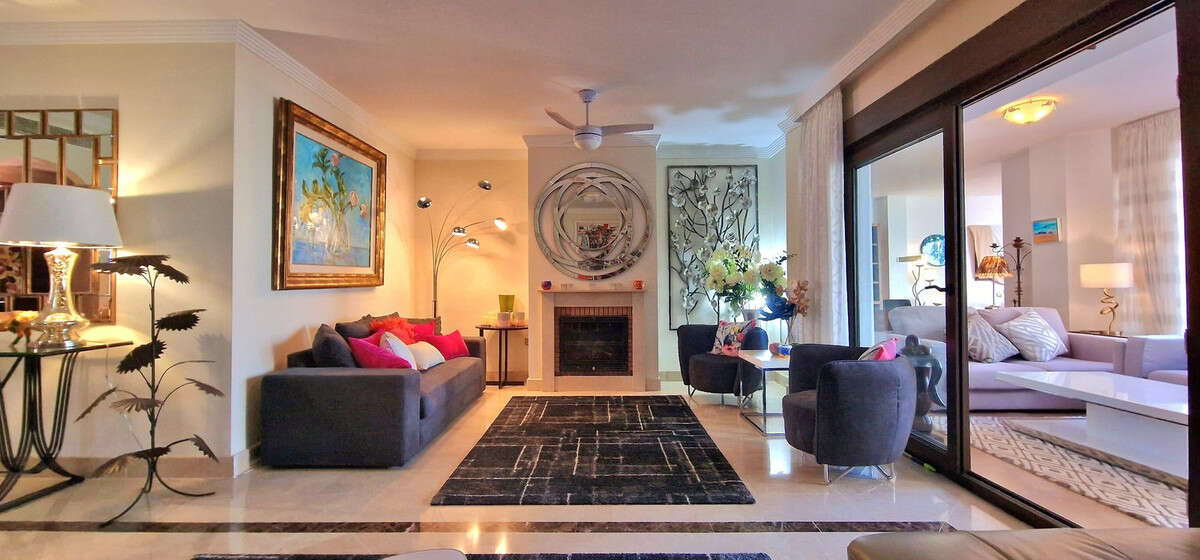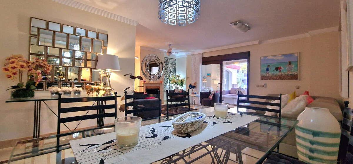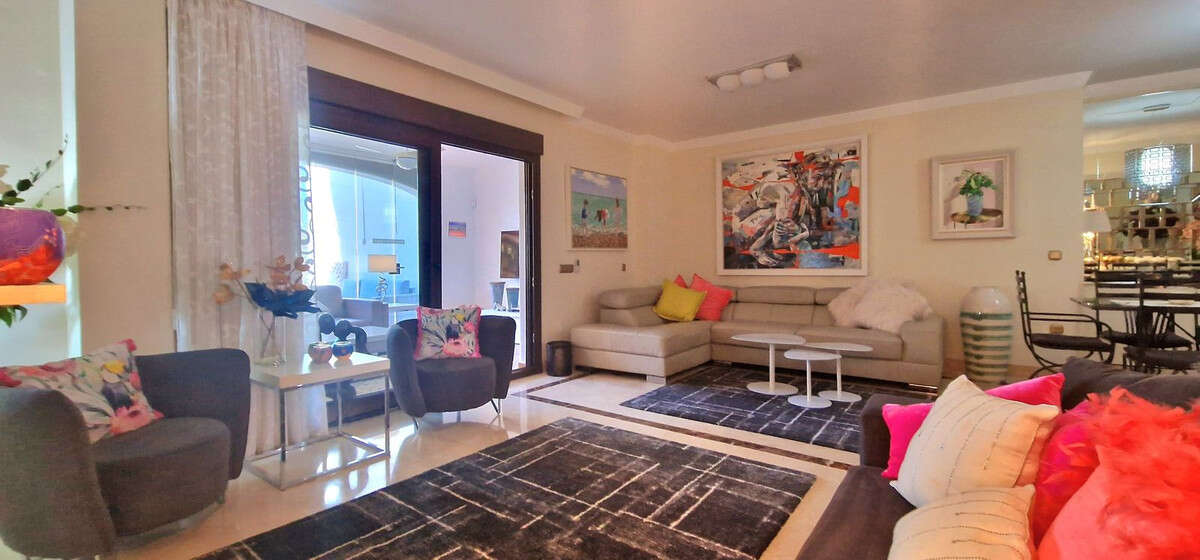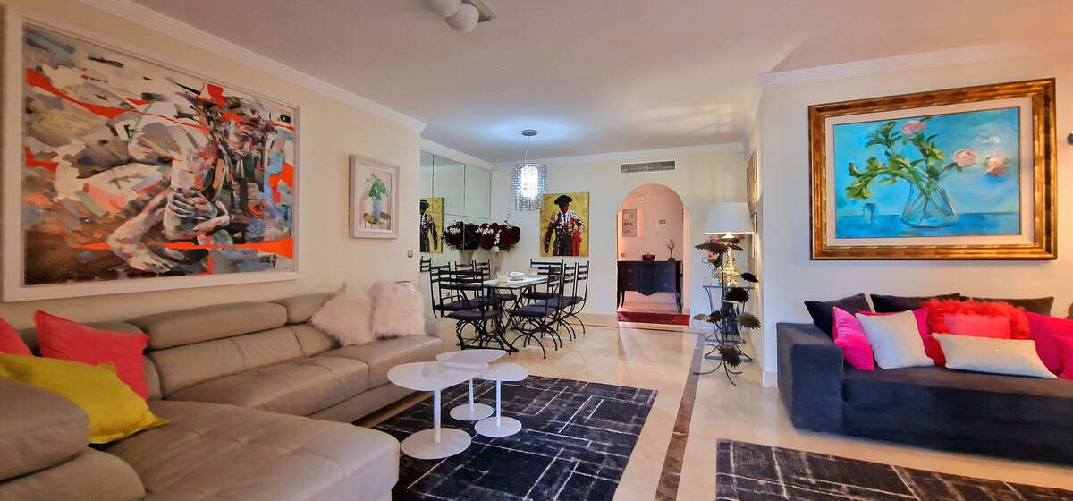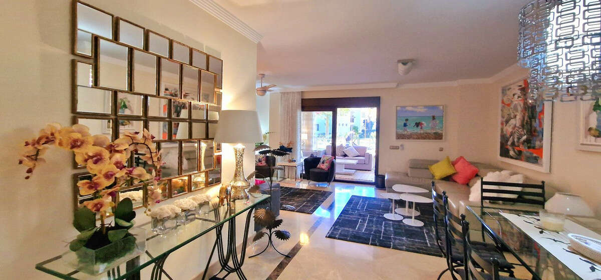 Inside, the apartment exudes sophistication and comfort, boasting two spacious living areas and two dining zones, all finished to impeccable standards. The current owner's tasteful furnishings complement the space perfectly—and yes, they can be included, making this a truly key-ready home.