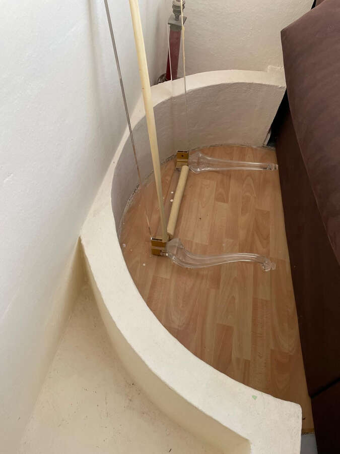 There is also the possibility of an internal connection to the upper apartment via a staircase (the opening is still visible in the living room), meaning that both levels can easily be combined back into one spacious home if desired.