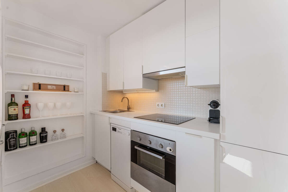 The apartment has been designed to make every square metre count. Originally constructed in 1974 and fully renovated in 2020, it reflects a fresh Scandinavian influence, where clean lines, warm tones, and natural textures work in harmony. Wood floors, stone accents, and refined furnishings create a tranquil atmosphere that feels both timeless and contemporary.