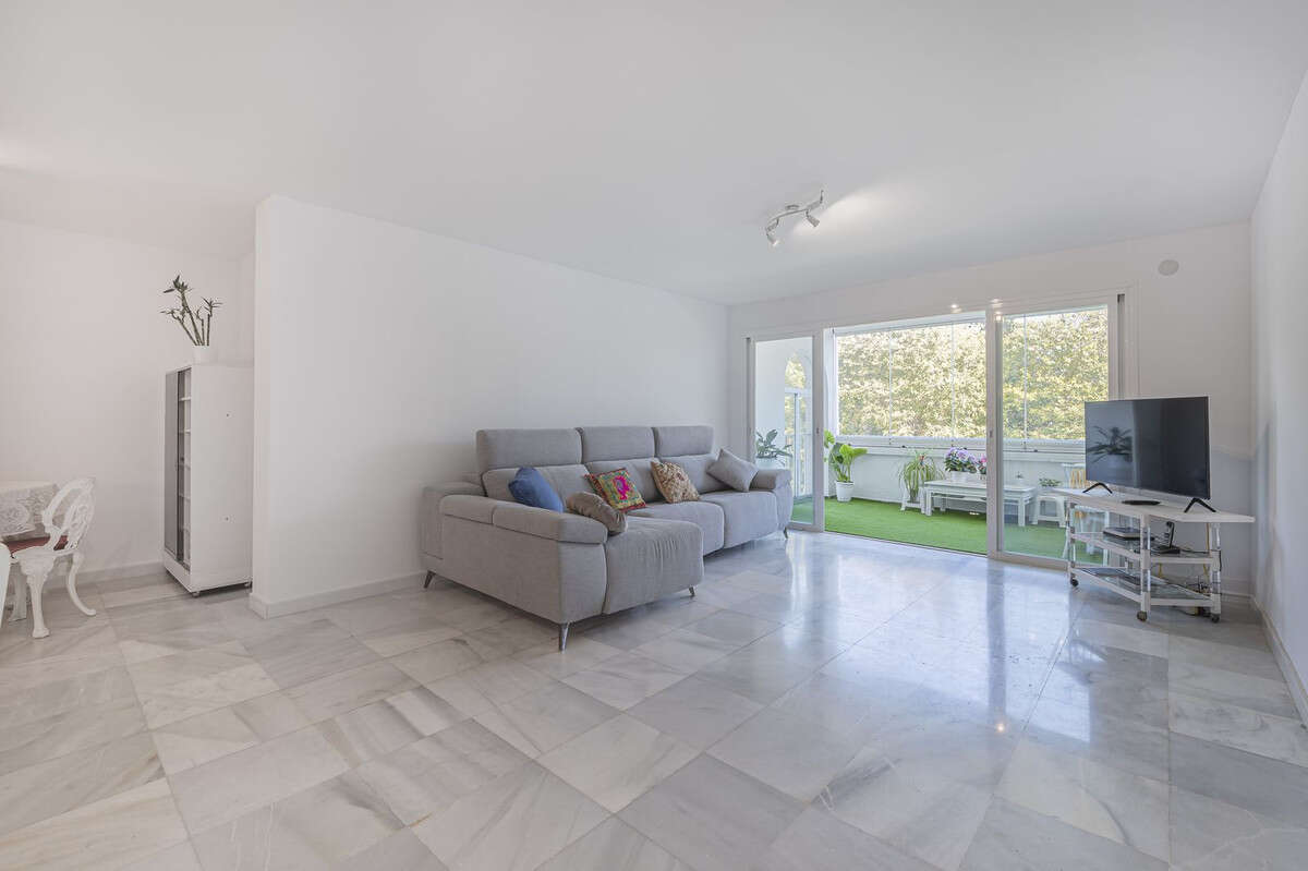 Spacious flat to refurbish in Nueva Andalucia, close to Centro Comercial Plaza and walking distance to Puerto Banus. Discover a unique option! A spacious flat, designed on one floor, which is characterised by its functional and comfortable layout. Upon entering the property, you will be greeted by a spacious entrance hall leading to an independent kitchen fully equipped with appliances and a laundry room. The living-dining room is bright and offers direct access to an enclosed terrace with open views. The flat has four generously sized bedrooms, all of them equipped with fitted wardrobes offering ample storage space. Furthermore, there are two complete bathrooms, some of them en suite. This property has many possibilities for refurbishment.