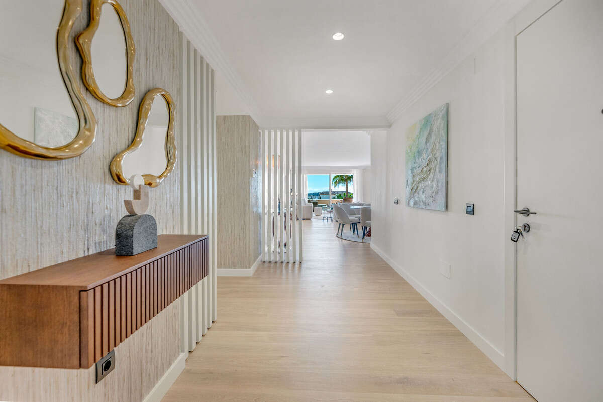 The wrap around terrace itself is a standout feature: perfect for al fresco dining, relaxing, and enjoying a charming additional sitting niche all while taking in breathtaking panoramic views across Las Brisas and Los Naranjos golf courses, the Mediterranean Sea, Gibraltar, and even the distant Atlas Mountains of Africa.