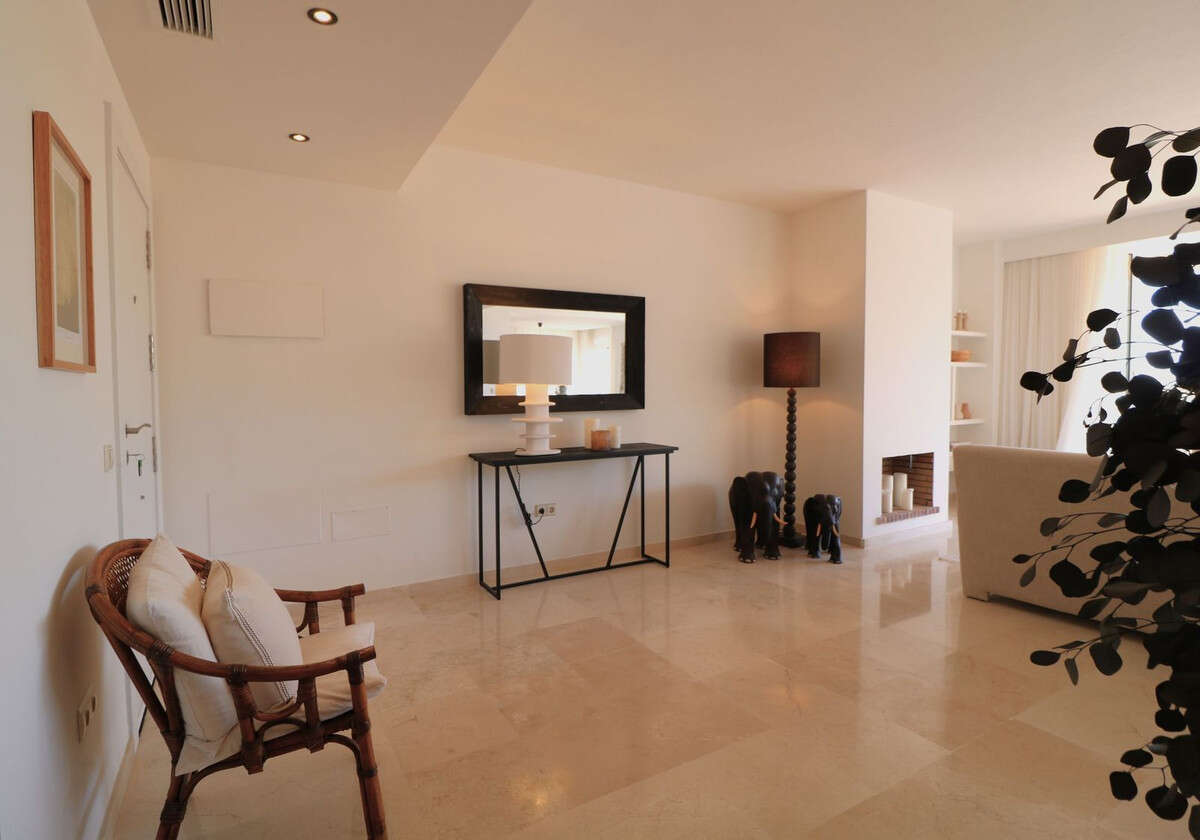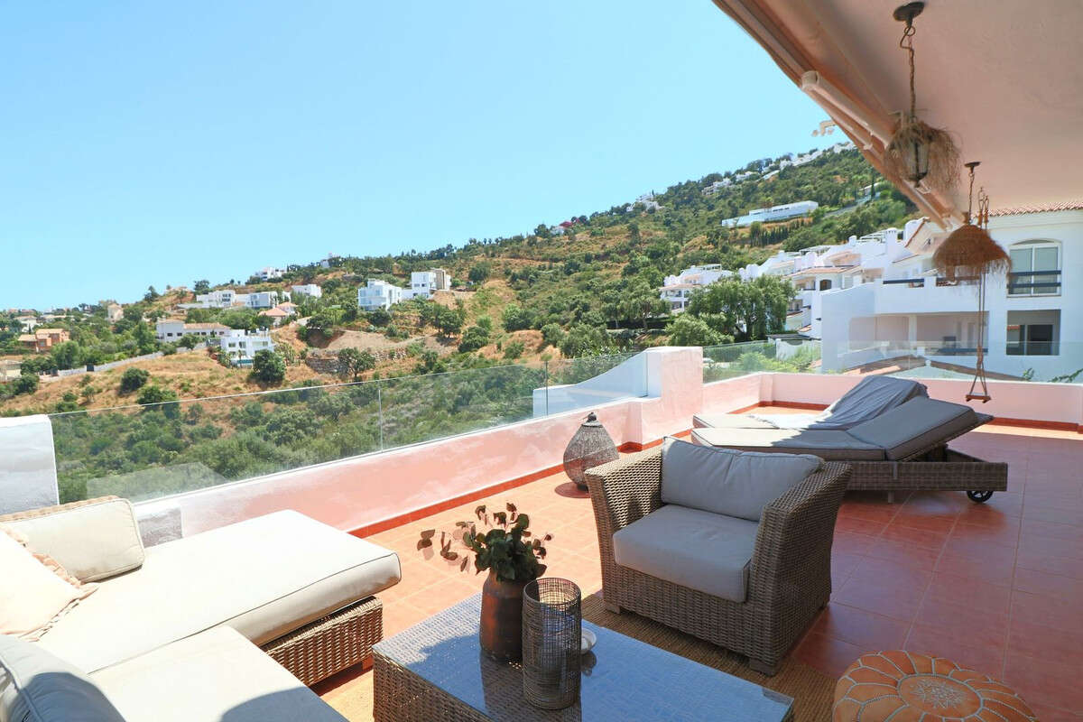 Spectacular 2-bedroom, 2-bathroom apartment, completely renovated in the exclusive area of La Mairena, Ojén, surrounded by nature and with unparalleled views of the sea, the golf course, and the mountains. The property features a modern open-concept design, with a kitchen integrated into the living-dining room, providing ample space and light throughout. It has two private terraces: one measuring over 15 m² with stunning views of the Mijas Valley, the sea, and the natural surroundings, and another measuring over 6 m² with unobstructed views of the Ojén mountains, ideal for relaxing and enjoying the tranquility of the surroundings. It includes two large parking spaces and a storage room. It is located in a luxury development offering well-kept gardens and a spectacular communal infinity pool with sea and mountain views. This property represents a unique opportunity both for year-round living and for investing in one of the most peaceful and privileged areas of the Costa del Sol. In addition, there is the possibility of purchasing the adjoining penthouse, with the same characteristics but in need of renovation, either to join both properties or as an excellent independent investment. Its price is €455,000.