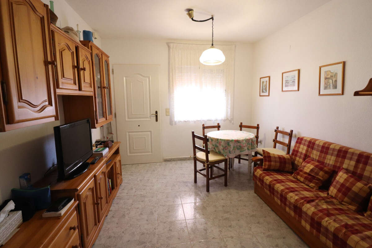 This South Facing, Two Bedroom, Top Floor, Apartment in Playa Flamenca is located in the heart of the ever-popular Orihuela Costa, just a short stroll from the Municipal Sports Ground and only a 10-minute walk to a selection of restaurants and café bars. The La Zenia Boulevard shopping centre, beautiful sandy beaches, and the Villamartin golf course can all be reached within a 5-minute drive, offering the perfect blend of convenience and coastal lifestyle on the Costa Blanca South. The property is accessed via a partly covered entrance terrace also boasting sun blind for shade, a lovely spot to relax and soak in the sunshine. Inside, the bright lounge/dining room leads to a separate arched fitted kitchen, two double bedrooms, including a master with built-in wardrobes, and a family bathroom. Internal stairs from the lounge lead to a first-floor room, ideal as an office/sitting area, which opens out to a private solarium — perfect for sunbathing or al fresco dining, also having a handy storage room. Residents have access to a nicely maintained communal pool area with a grass surround and the benefit of off-road parking. A fantastic opportunity for holidays, rental investment, or year-round living in a sought-after location on the Costa Blanca South.n