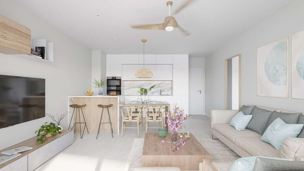 Living by the sea is possible with this charming apartment located in an exclusive beachfront development. Upon entering, a bright living room with an open kitchen welcomes you, creating the perfect space to relax or share moments.