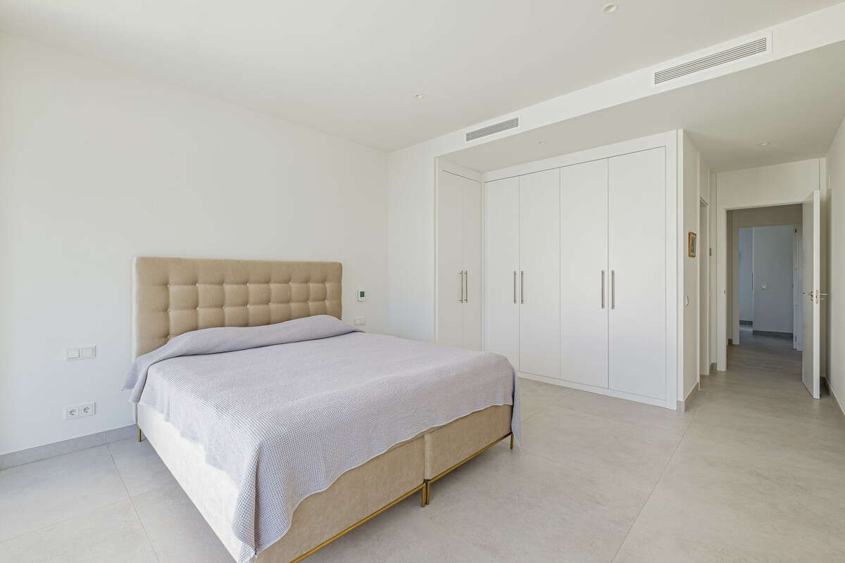 The living area opens directly onto a large private terrace offering views of the sea as well as of the beautifully designed community pool and gardens with wooden walkways and a tranquil water feature running the entire length of the urbanisation.