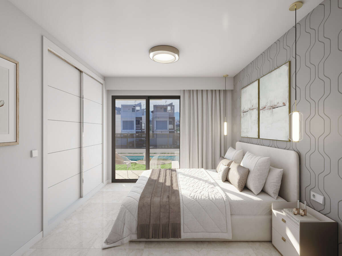 The development features fully furnished 2- and 3-bedroom homes with 2 bathrooms, spacious terraces, solariums, and high-end finishes. Designed for maximum comfort, each home includes air conditioning, underfloor heating, aerothermal systems, and a built-in barbecue.