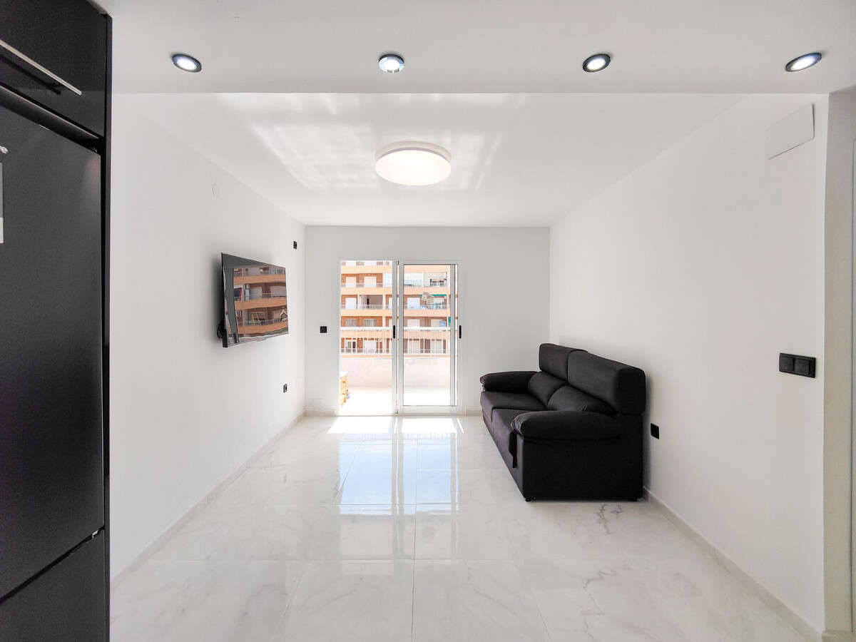 Beautiful completely renovated south facing apartment with views over the swimming pool for sale in Rocío del Mar – Punta Prima – Torrevieja. Located in a building with elevator, covered and fenced parking for residents and a huge communal swimming pool with lifeguard. Very well kept building.