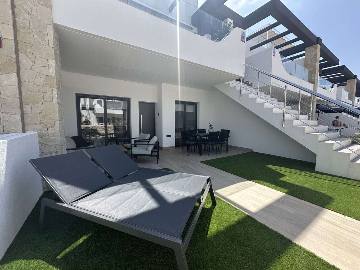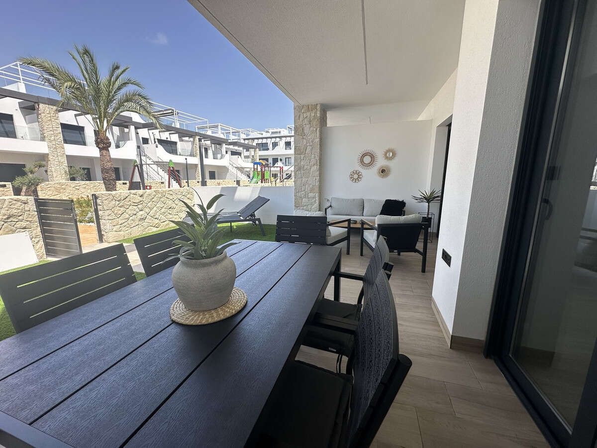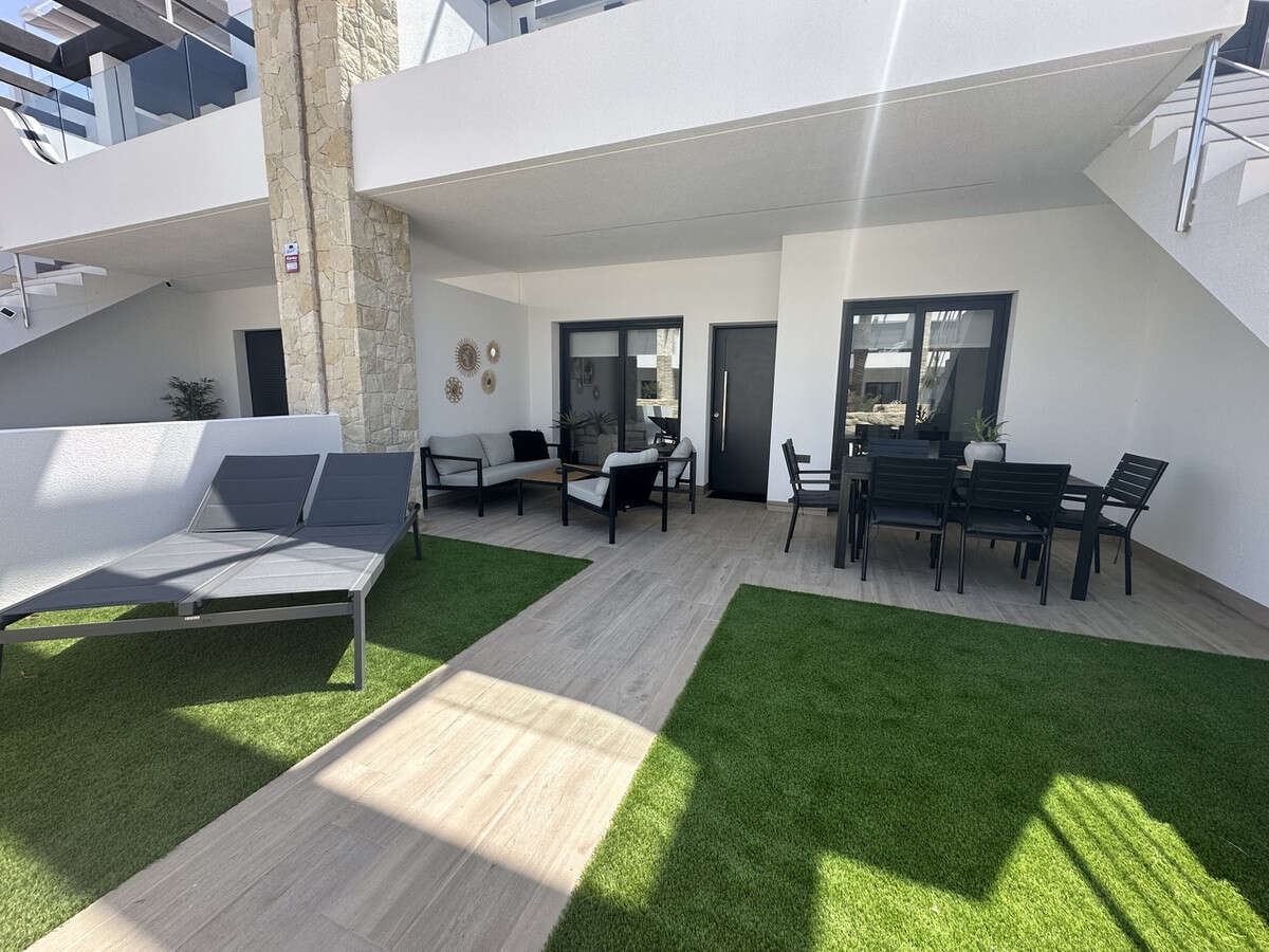 This immaculately presented ground floor apartment with 3 bedrooms in Punta Prima, Alicante is offering a fantastic view overlooking the communal garden with swimming pool. Located in a very popular area just a short walk to a great selection of local amenities and within a short drive to a selection of golf courses and beautiful beaches.