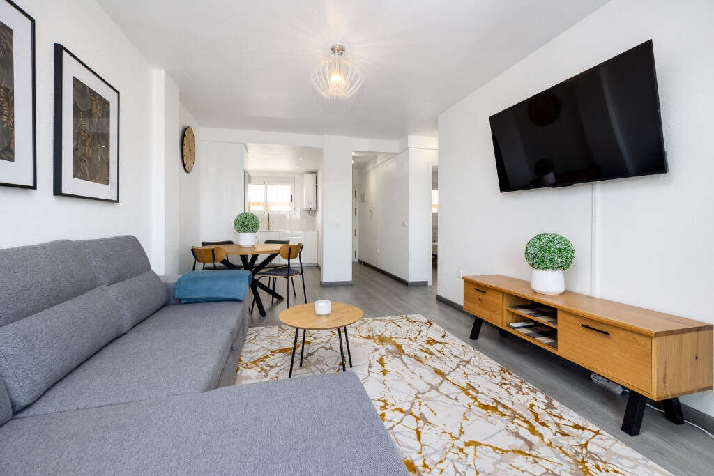 For sale newly renovated first floor apartment Punta Prima. The property offers 75 square meters consists of 2 bedrooms, a separate equipped kitchen, a bathroom with walk-in shower and spacious living-dining area. Also there is a huge terrace, where you can enjoy your mornings and evenings with a cup of tea. Only 600 meters away you will find the charming bay of Cala Piteras, and 1.2 km away Playa Punta Prima spreads out, a favorite beach for both locals and visitors. Here in Punta Prima you'll find a wide range of supermarkets, shopping, restaurants and cafés - all for a comfortable and enjoyable life by the Mediterranean. Floor: 1 / 5 SUMA/IBI (property tax): 320.9€ per year.