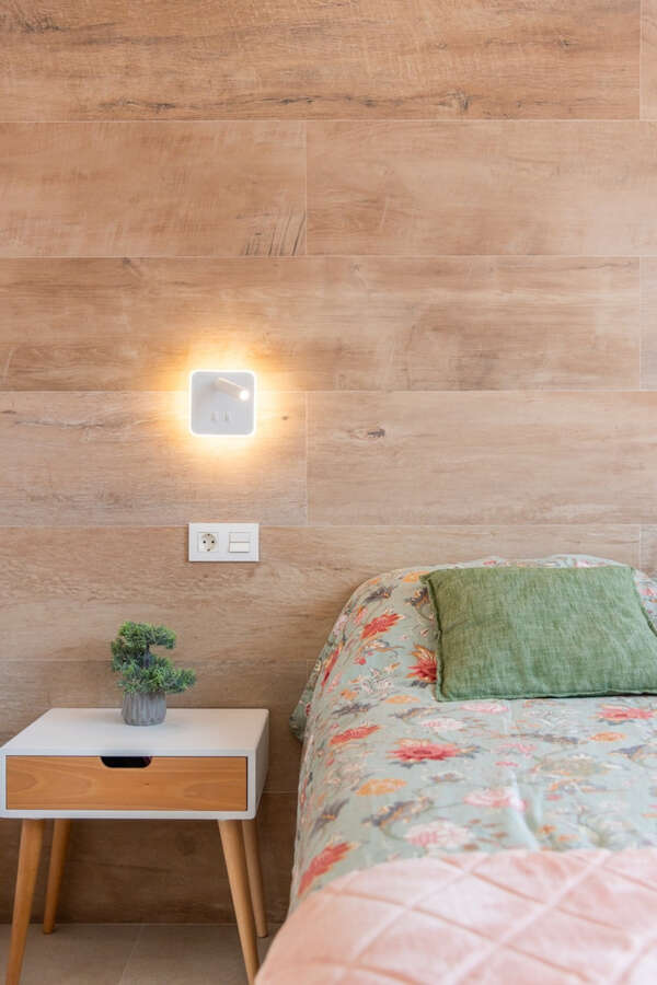 The property offers 2 bedrooms and 2 bathrooms, along with a bright living area featuring a built-in bed, providing comfortable accommodation for up to 6 people.