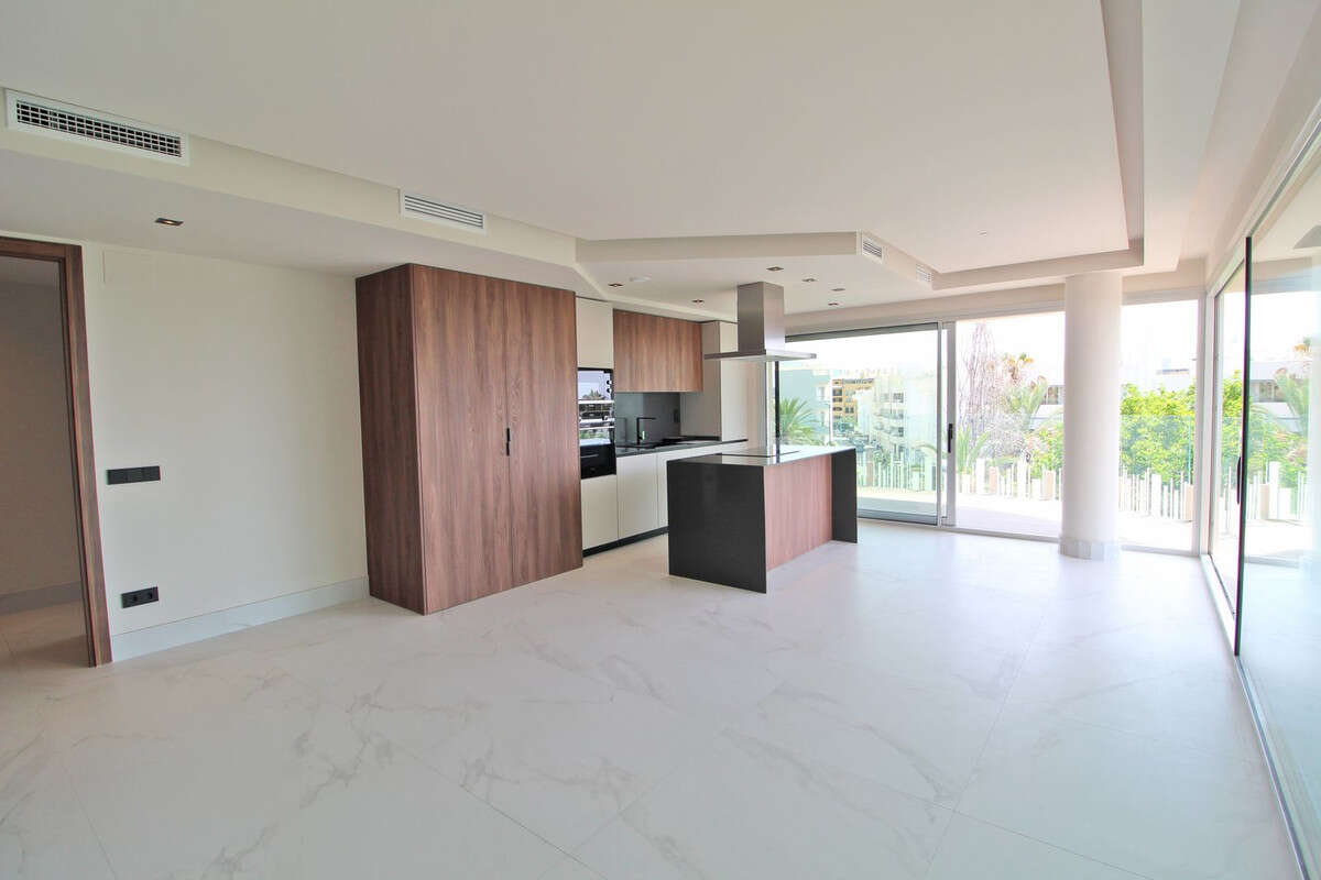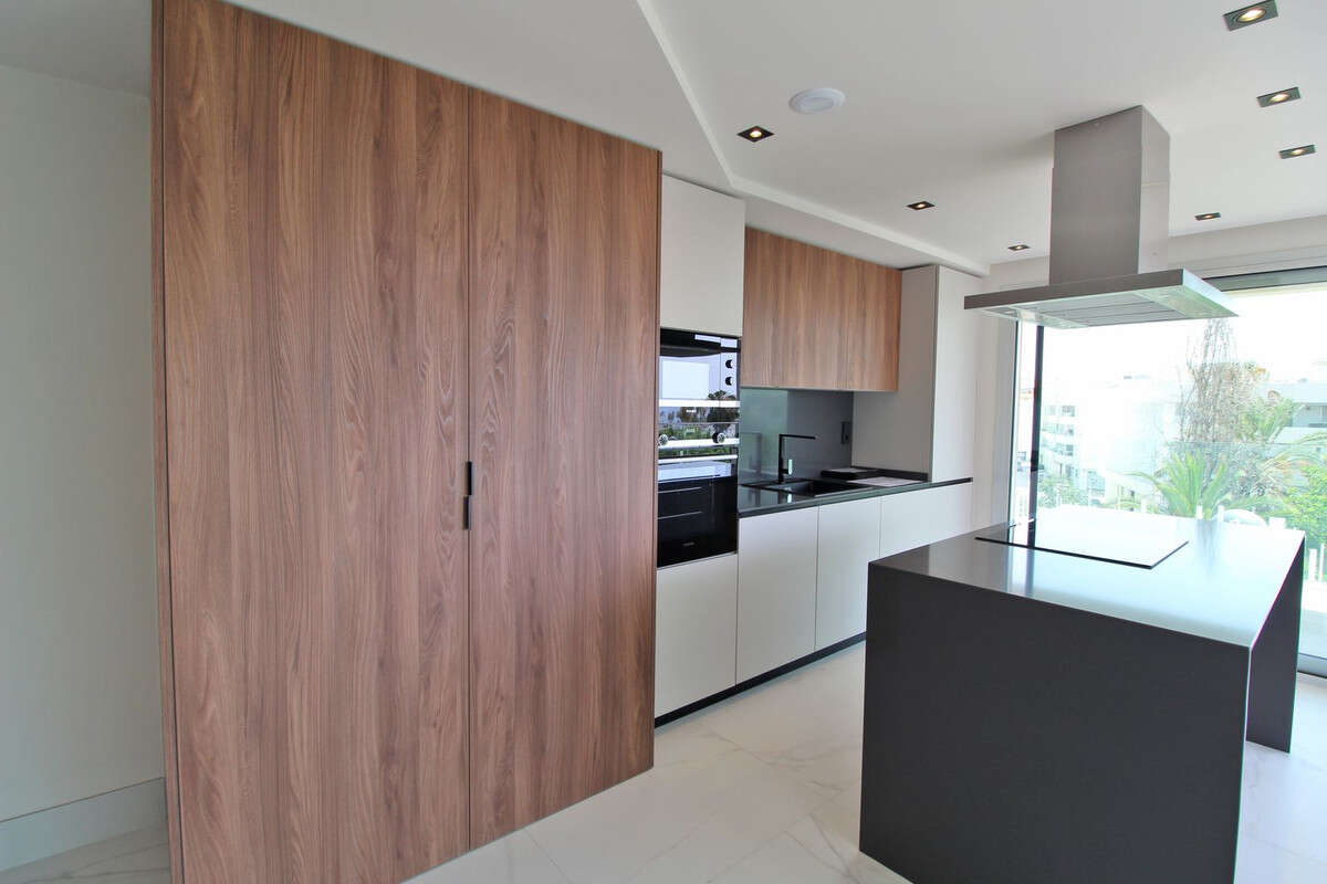 Brand new, 3-bedroom beachside apartment. Just a 4-minute walk from the seafront promenade and 3 minutes from the town of San Pedro de Alcántara, it is strategically located next to Puerto Banús in Marbella. The area boasts wide, modern avenues with bike lanes, gardens, and public transportation, all surrounded by restaurants and shops.