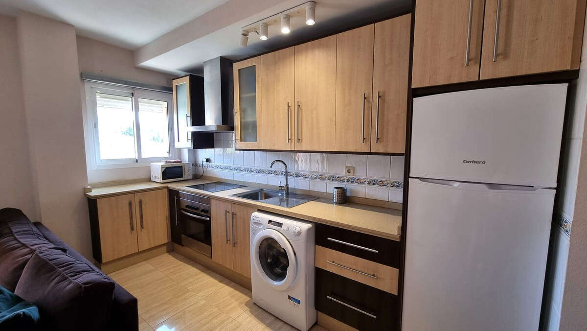 The apartment comes fully furnished and equipped, ready to move into or rent from day one. It features a communal pool, private parking space, and hot/cold air conditioning in the living-dining room and kitchen.