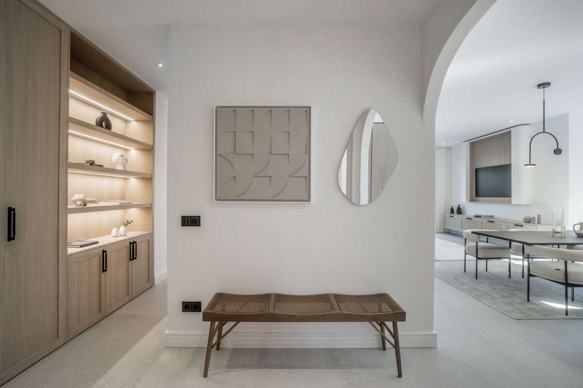 Where every aspect of this apartment has been carefully designed to create a unique living experience: elegant floors, high-ceiling, contemporary custom wood carpentry and wardrobes, natural fabrics and textures, an open designer kitchen with Miele appliances.