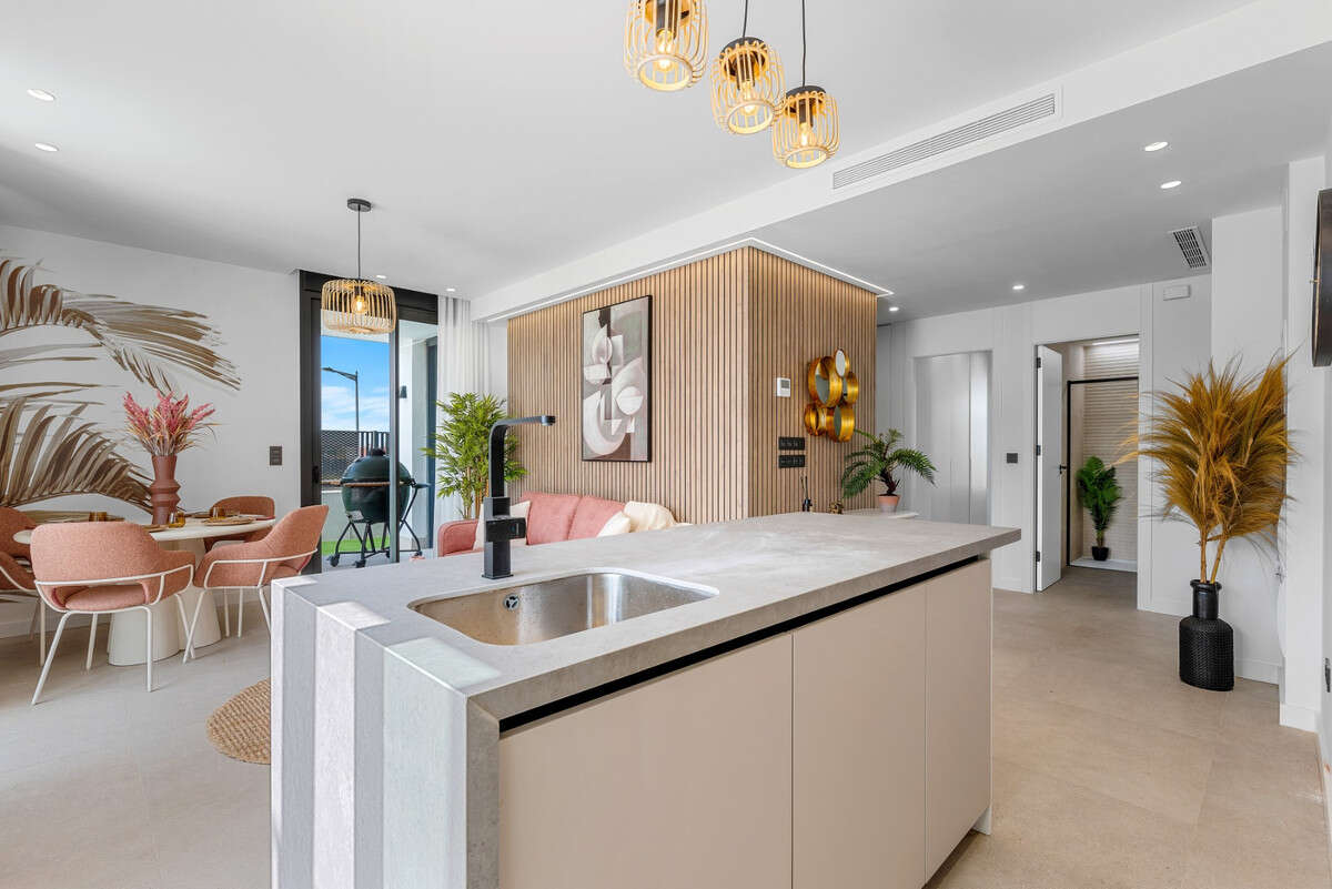 Are you looking for a unique property where comfort, luxury, and a true holiday atmosphere come together seamlessly? Then this exclusive ground-floor apartment is exactly what you've been searching for. This brand-new, never-before-inhabited residence is part of a prestigious and carefully designed development centered around a stunning turquoise lagoon – a rare and idyllic setting seldom found in Spain.