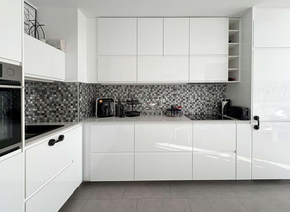 The highlight of the property is its 13 sqm terrace, where you can relax and enjoy breathtaking views of the park and the sea. Inside, the apartment features a brand-new IKEA kitchen, designed with glossy white cabinets and ample storage space, making it both stylish and functional.
