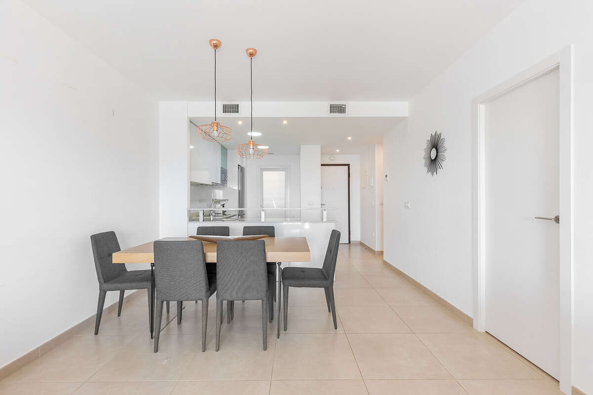 We present this beautiful apartment distributed in three bedrooms, one of them with en-suite bathroom. A spacious living room with kitchenette and direct access to the terrace of 22m2 overlooking the common areas of the residential.