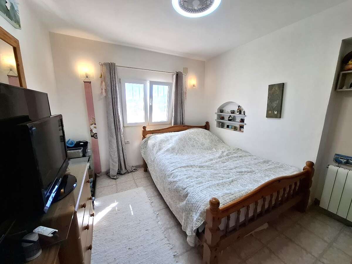 Villa with pool and sea views in Benissa. The main floor features a spacious and bright living-dining room, a fully equipped independent kitchen, four bedrooms, and three bathrooms. There is also a comfortable guest apartment with a living room, bedroom, and large bathroom. The villa includes gas central heating, a fireplace, a storage room, and a garage. Outside, there is a swimming pool, terrace, a lovely garden, and parking.