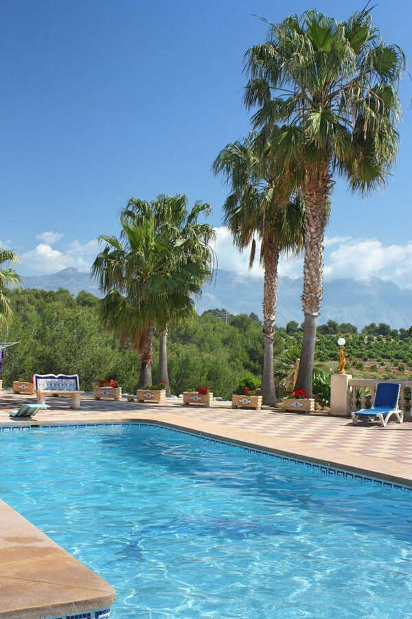 The view is magnificent: the Mediterranean Sea in the east, the skyline of Benidorm in the south, the mountains Sierra Bernia in the north and the highest mountain in the area in the west. The land is divided in a big park and forest.