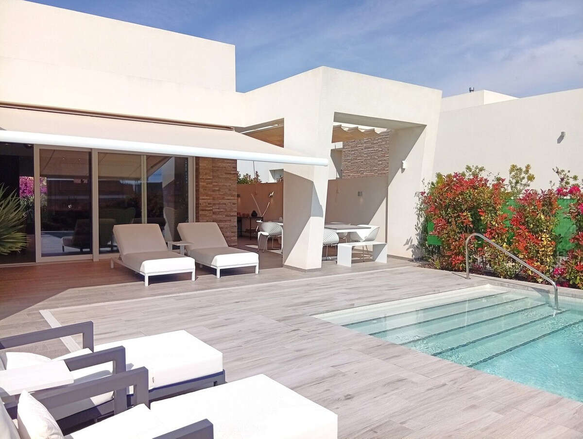 This exclusive resale villa is located on a 500sqm plot in the prestigious urbanisation of La Finca Golf in Algorfa, Alicante one of the most sought-after golf resorts on the Costa Blanca. The property combines comfort, privacy and high-quality materials in a stylish and unusual design – ideal for those looking for something unique under the Spanish sun.