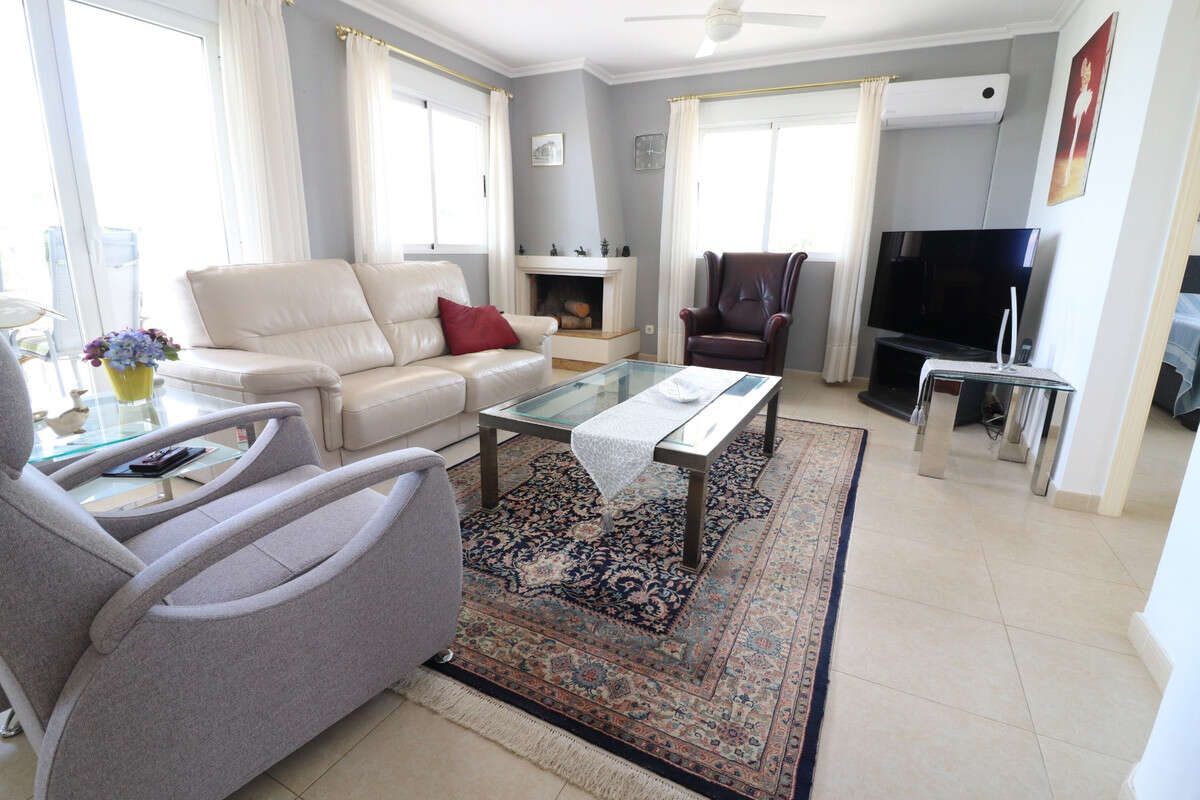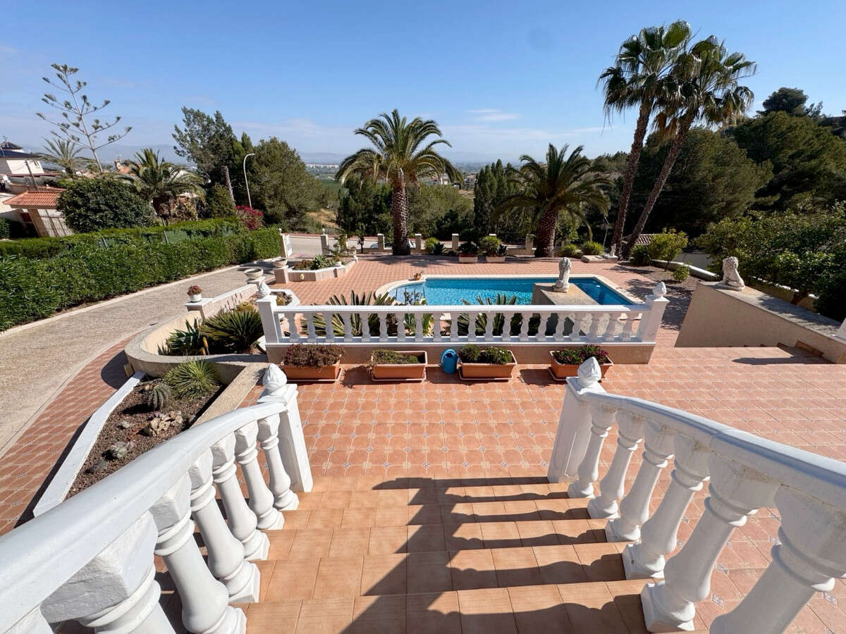 This Imposing 216m2, Three Bedroom, Detached Villa in Lomas de La Juliana is located in a very sought after residential area, with a tennis club at the entrance and La Finca 5* hotel, spa and golf course right on the doorstep, where you can also find a variety of eating places and shops. Main chain supermarkets can be found in Almoradi and Benijofar which are just 5 minutes by car. The beaches along the coast by car are approximately 20 minutes away. This outstanding home occupies a 1220m2 private landscaped plot with the most extensive views you will find in the area. The main living area of the villa is accessed via external staircase to an ´L´shaped covered terrace area, this then provides access into the lovely light living area, having a set of sliding doors and three sets of windows, feature open fireplace; incredible fitted kitchen/breakfast room; double bedroom and a family shower room. The ground floor of the property is accessed externally and comprises of lounge, archway into the fitted kitchen, bathroom and two double bedrooms. The garden is pebbled and tiled with a long driveway leading to a garage and a carport; the pool area has tiled surround and there are plenty of mature trees, bushes, palm trees surrounding. Extras include underfloor heating throughout the main floor, air conditioning, fitted wardrobes in all bedrooms, irrigation system.n