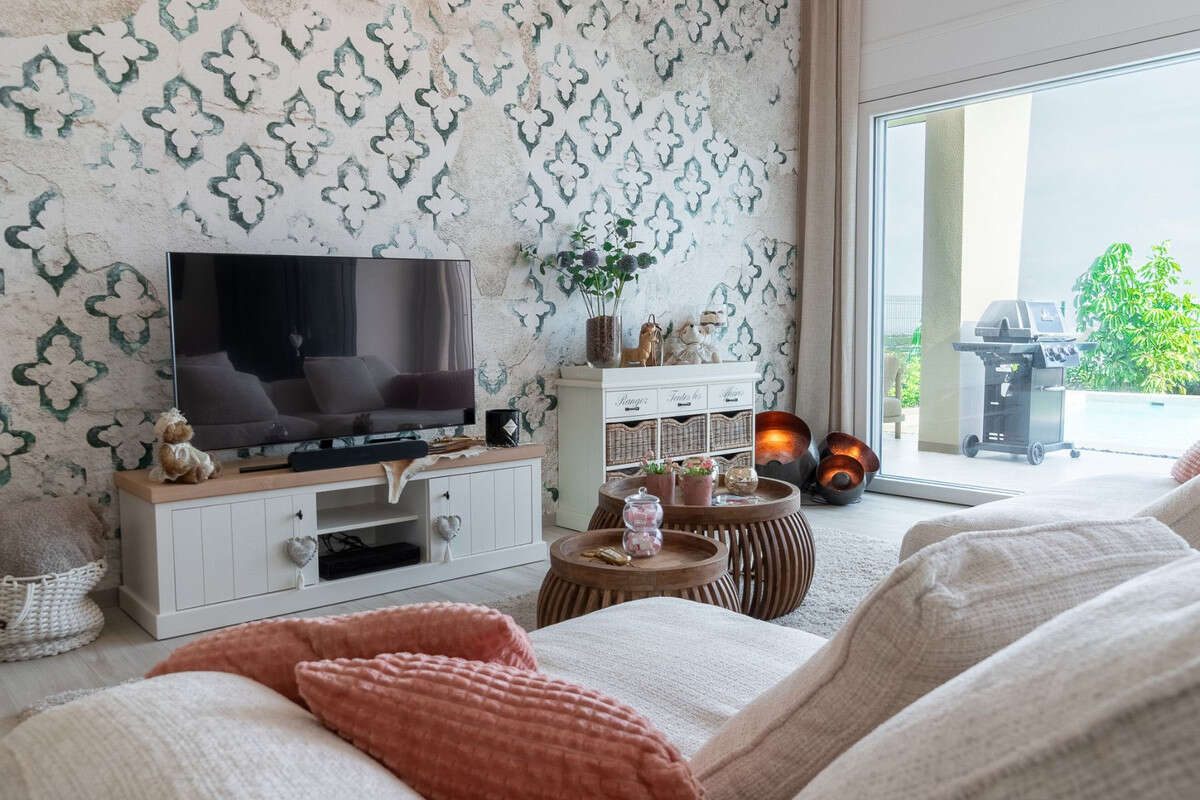 We are pleased to present this stunning luxury villa with panoramic views due to it´s elevated position at the 5 star La Finca Golf course. This impressive modern home is a perfect example of a resale of a new build without the wait and packed with luxury extras. The home offers a vast living/dining space, typically not seen in such homes, and offers the perfect area for leisure and entertainment, there is still ample space for a formal dining area or you can sit at the large island leading to the high end kitchen, which features floor to ceiling integrated cabinetry, ample work top space and top of the range white goods, plus leading out to a utility area and to the side patio terrace. The home offers 3 bedrooms, the master suite comprises a spacious double bedroom with patio doors to the garden and sun terrace, large walk in dressing room, with ample storage and floor to ceiling mirror, plus luxury shower room with his and hers sinks. The further 2 guest bedrooms both feature integrated wardrobes with ample storage space and share a further modern shower room. The whole home inside presents like a show room and has been made unique by the owners eye for detail and shows clearly their passion for interior design. Each piece and all decor has been lovingly chosen to integrate sympathetically with the wood and stone design, yet brings a touch of class to each room. The villa is set on a low maintenance plot of over 400m2 with sun terrace to the front offering some shade from the Spanish sun and is the perfect space for al fresco dining, likewise a sunny corner along with an summer kitchen/bar area offers the ideal spot for entertaining. The villa of course offers  private swimming pool to cool off in the height of summer and the remainder of the plot is low maintenance with high quality tiles, gravel and artificial grass, a easy to access driveway offers secure gated parking, although there is ample quiet street parking outside the villa.  Boasting stunning unobstructed mountain and country side views due to it´s elevated position this home offers everything a discerning buyer could wish for.  This stunning villa will be sold part furnished although inventory can be discussed dependent on offers and is sold with many extras including integrated white goods, air conditioning, remote controlled blinds and gates, plus much more. Located a mere 200m to the La Finca Golf hotel Spa and club house , ideal for golf lovers for those extended holidays or ideal for permanent living as under 3km to both the traditional village of Algorfa which offers Spanish charm,local restaurants, bars, local shops and the traditional village square and the commercial area at La Finca also noted for some quality restaurants, cocktail bars and much more. Around 17km to the beaches of Guardmar del Segura , La Mata and Torrevieja, meaning you are never far from the coast. This home must be seen to be appreciated and is even more stunning in real life. Contact us today for your viewing