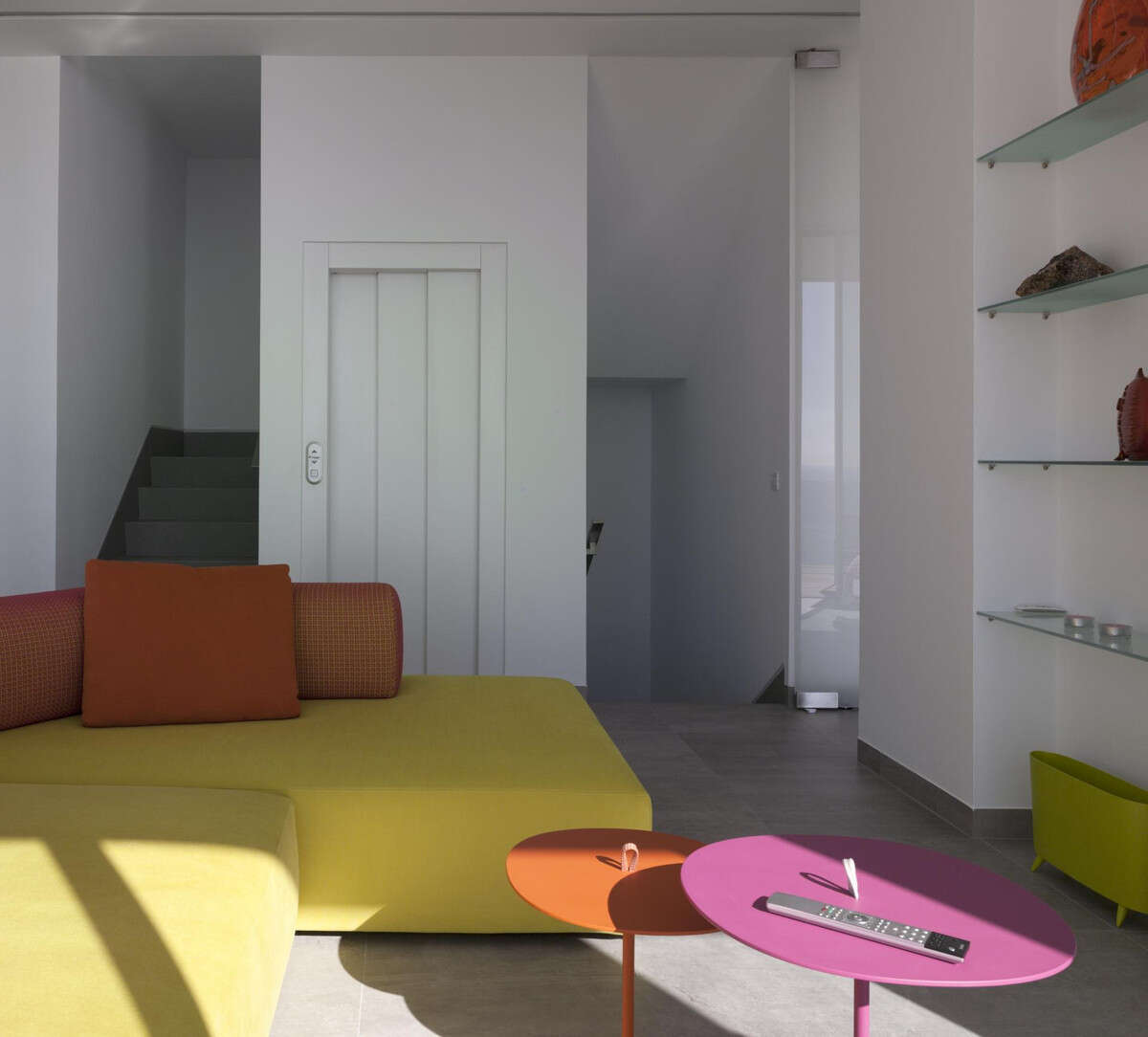 The house is entered through the garage with beautiful views where there is also the elevator connected to all levels of the house. The garage is equipped with large storage cabinets.
