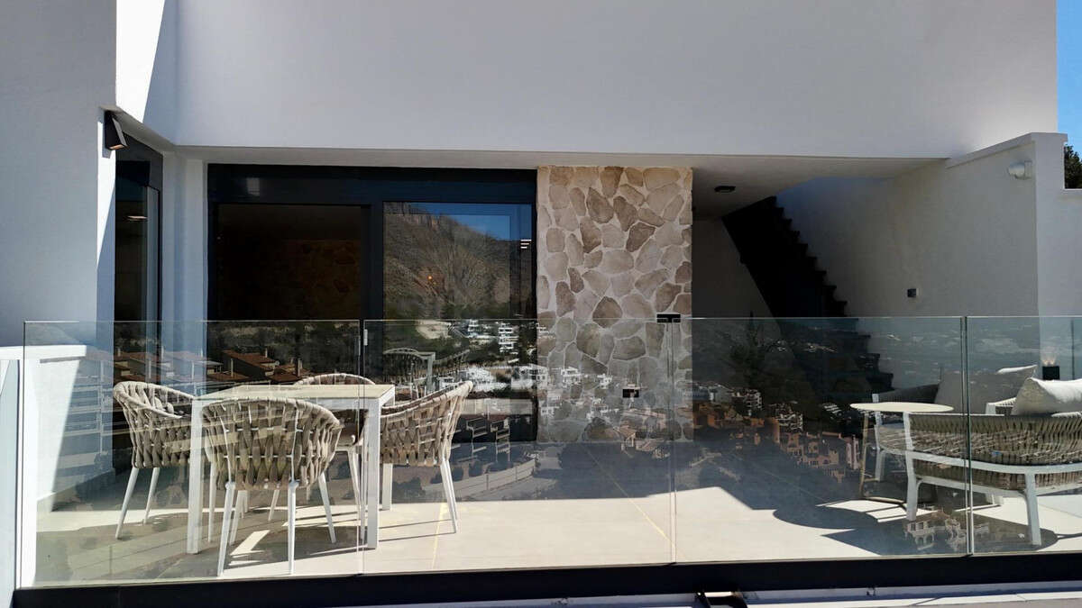 Exclusive villa with private swimming pool located in the prestigious area of Sierra de Altea on the Costa Blanca. A property that perfectly combines contemporary architecture, comfort, energy efficiency and stunning Mediterranean views.Key features: • Built area: 239 sqm • Living area: 191 sqm • Plot: 409 sqm • 3 bedrooms • 3 bathrooms • Private pool • Spacious terraces and solarium • Private garage / parkingBright open-plan living and dining area with modern kitchen and direct access to the terrace.Equipped with smart home system, security alarm, solar panels, central air conditioning and heating, and double-glazed windows for optimal insulation.Close to the sea, golf courses, marinas and the historic center of Altea.Ideal for permanent living, holiday home or high-yield investment.