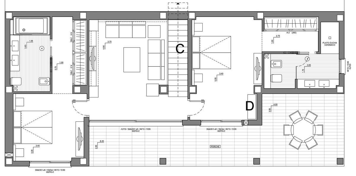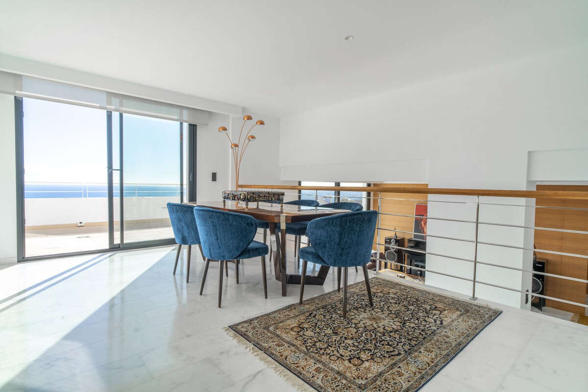With 250 m² of living space and 195 m² of terrace, the villa offers bright and elegant rooms that seamlessly combine style and functionality. The living room is divided into two levels, creating separate spaces: