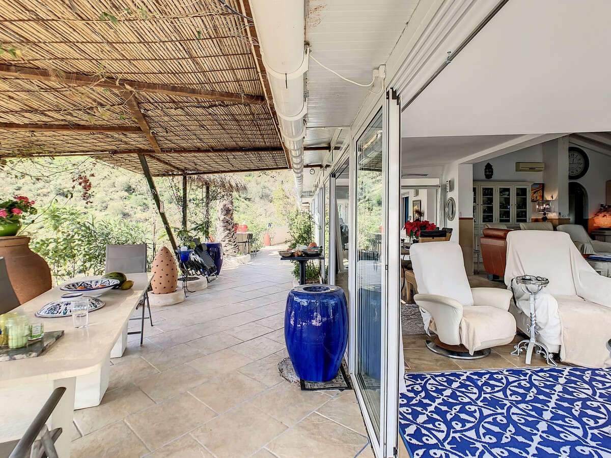 You are looking for a large villa with a heated swimming pool, neatly hidden nearly at the top of a mountain, surrounded by nature with breath-taking views of the valley up to the sea and the village of Arenas? This might just be what you are looking for. At the entry of the property, you find a covered parking space for at least 6 cars and a workshop. From there you step onto a wide porch that surrounds the whole property. In the centre of the house, that ́s all on one level, you find an office, 3 bedrooms, 2 bathrooms (one on-suite), 2 kitchens, an open bbq space, a large sitting/dining room and more sitting areas with views to the outside through French doors. Around the porch there is an array of different privative sitting/sunbathing spaces where it is just a dream to be. Here you also find the heated swimming pool, palm trees, an exterior bedroom and a passage leading to little romantic benches with fantastic views all around the foot of the property. There is also an outdoor kitchen. This property is well finished and comes with all the amenities. It is perfect for people that are fond of comfort and privacy. We are pleased to be able to present this dream property to you soon, either personally or via virtual viewing. Because this world, it is unique - just like our Axarquía. In Andalusia. On the Costa del Sol. Here, on the sunny side of life...