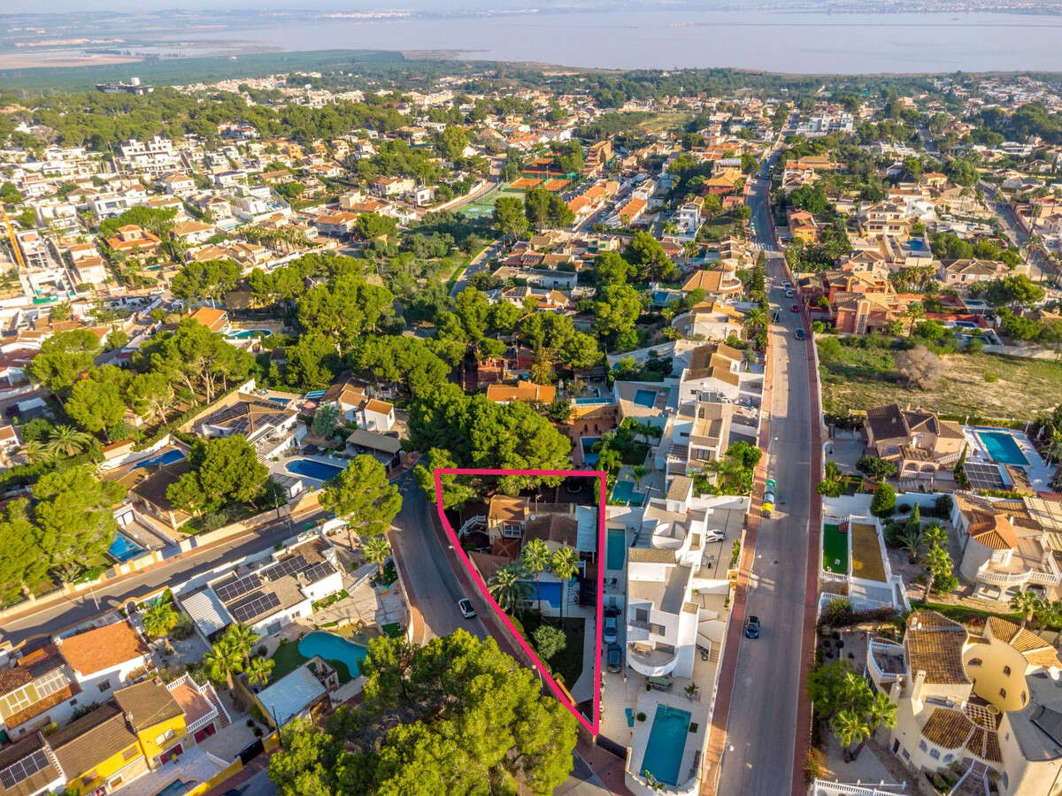 Detached villa with private pool and large plot in Los Balcones~~Detached villa with a spacious plot, private pool and wellness area, ideal for year-round living.~~The property has an approximate built area of 200 m2 and stands on a plot of more than 800 m2, located in the prestigious residential area of Los Balcones — a quiet and well-connected area of Torrevieja.~~It offers three bedrooms and three full bathrooms, along with a bright living room and an independent kitchen. All rooms are equipped with heating by radiators (diesel boiler) and air conditioning via split units.~~Outside, the villa features a large garden area with a private pool, a glazed winter room, and a sauna area — perfect for relaxation and comfort.~~There is also a closed garage with space for two vehicles.~~A well-maintained and complete property offering privacy, space, and excellent quality, ideal as a permanent home or as a holiday residence.