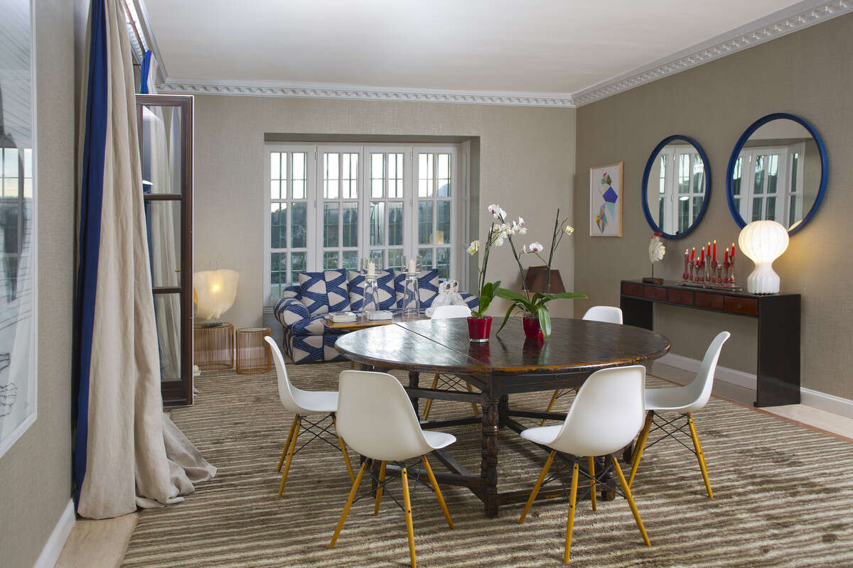The spacious entrance hall, flooded with natural light, distributes access to the main areas of the house.