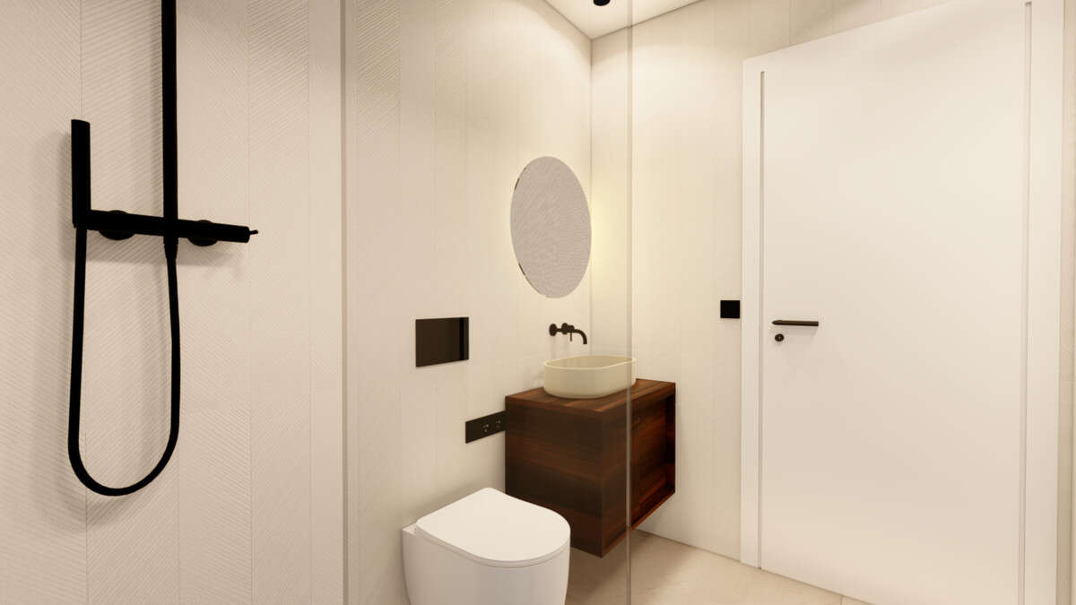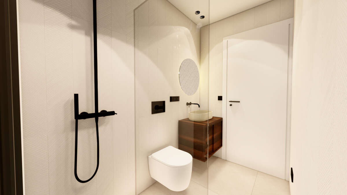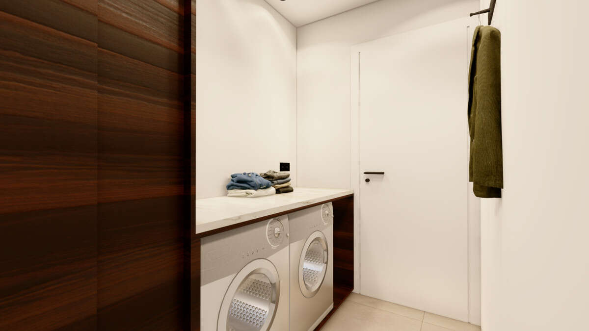 The properties come equipped with essential features such as pre-installation for air conditioning, motorised aluminium blinds, bathroom furniture with mirrors and shower screens, as well as a dressing room and built-in wardrobes. These details enhance comfort while maintaining a modern and cohesive design throughout the home.