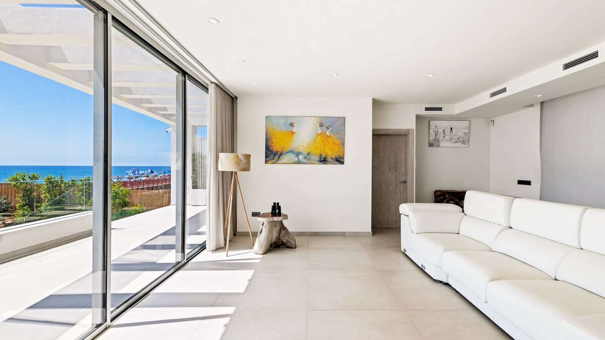 Spectacular beachfront villa with panoramic views of the Mediterranean and direct access to the beach.