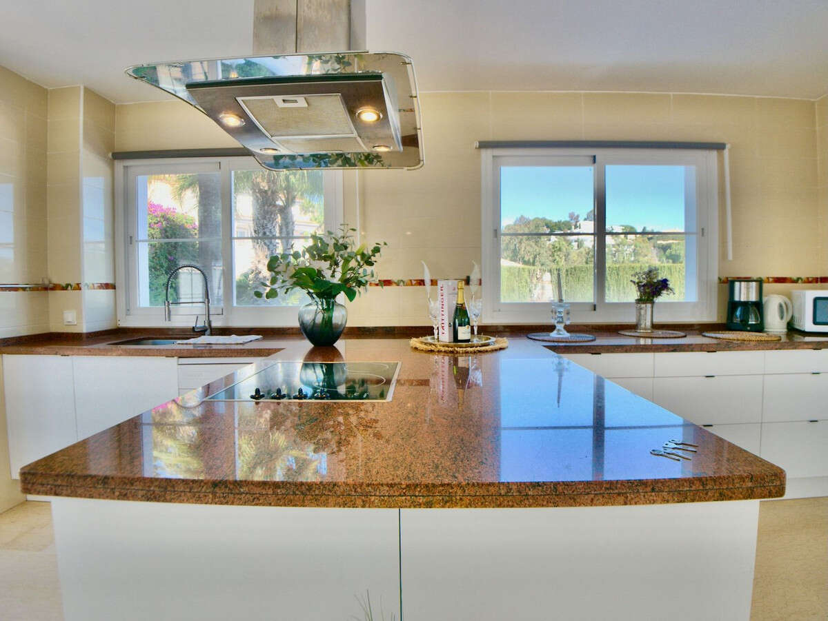 In the beautiful and attractive town on the Costa del Sol, La Cala de Mijas (Torrenueva), you will find this fantastic three-story villa with views of the Mediterranean Sea and Spain's Costa del Sol. Just half an hour from Malaga airport by car, you drive two minutes from the main road up towards the mountain and enter a large entrance hall with high ceilings, from where you have access to the villa's bright ground floor and upper floor, lower floor, stylish kitchen, living room with high ceilings, swimming pool and lovely terrace. With a total of 6 bedrooms ( 3 ensuits )4 bathrooms, 1 guest toilet , 2 Living rooms, two kitchens, two entrances, a garage with space for one car and a double garage with space for two cars, there is guaranteed room for the whole family and friends. The home can be divided, with a separate lower floor with three bedrooms, three bathrooms, private entrance and double garage, kitchen and living room. For example, you can have two families stay, rent the home to two families, or rent it to one family, while you yourself stay separately in the villa, with separate garages and entrances from two different streets. On the ground floor you will find one room and one bathroom with living room, kitchen, terrace and pool. If you go up to the first floor, you will find two en-suite bedrooms, where you can wake up with a view of the Mediterranean Sea. The location is absolutely top! Walking distance to some of the best beaches on the coast, the sea, shops, restaurants and driving distance to popular areas such as Marbella and Málaga The villa is centrally located, where you don't hear city and road noise, but get the most beautiful views of various other villas, natural areas, mountains and sea That way you are private, but close to everything . Book a viewing and experience this bright, spacious and beautiful three-story villa with your own eyes