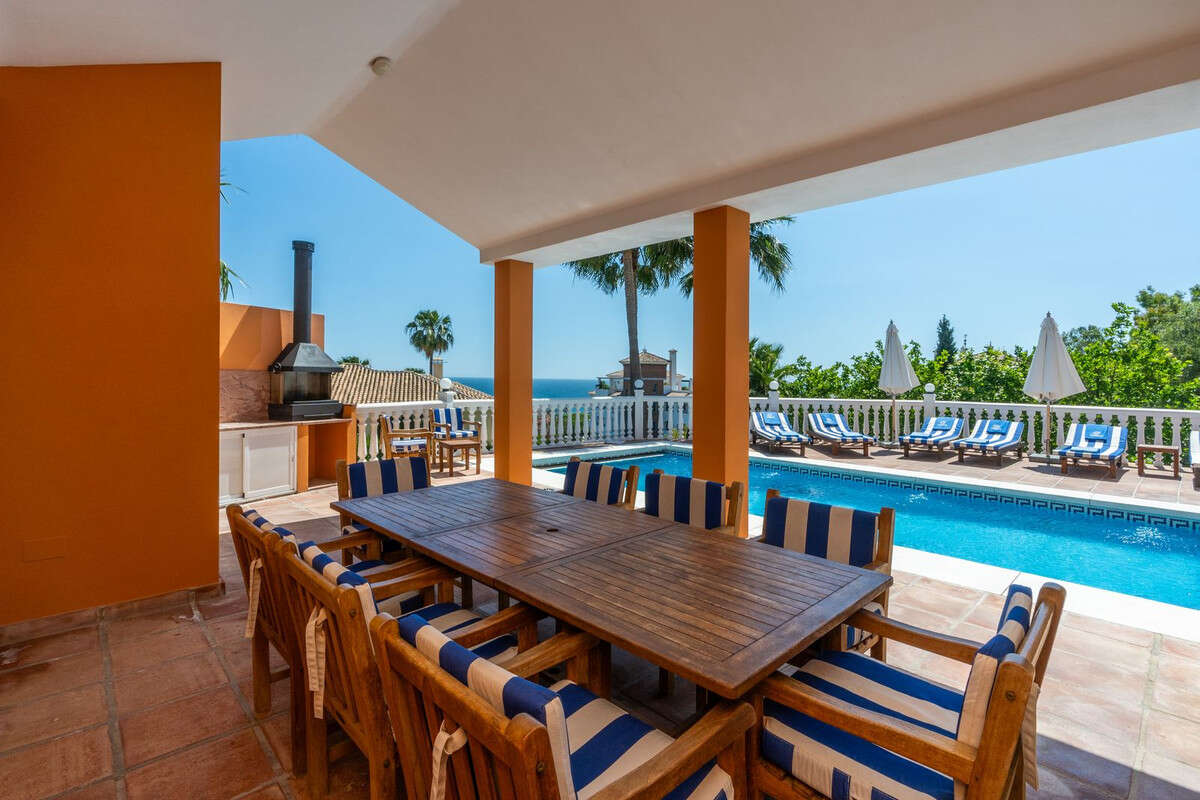 Upstairs, you'll find three additional bedroom suites, including one with access to a spacious private terrace offering breathtaking views of the Mediterranean. The lower level houses the fifth bedroom suite, a games room complete with pool and table tennis tables, and direct entry to the expansive garage.