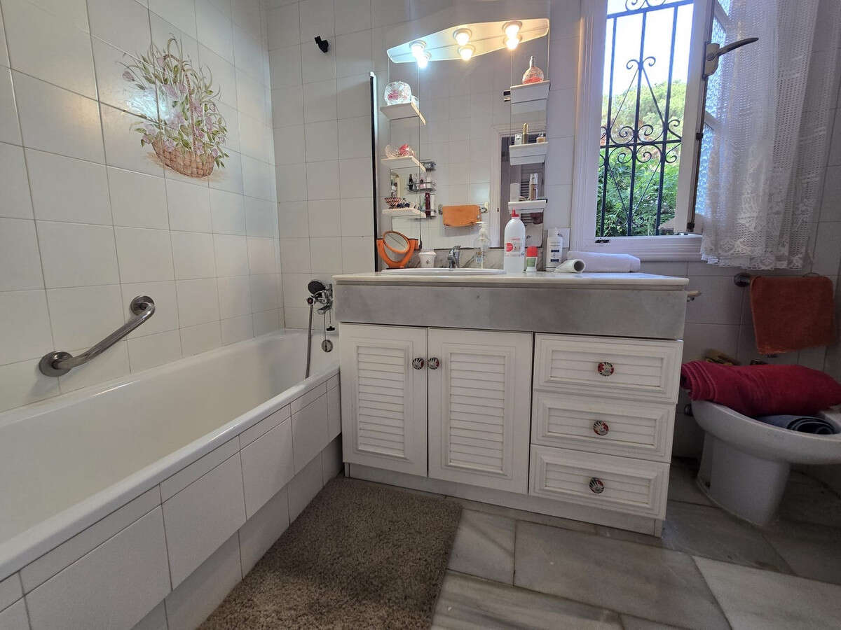 It includes numerous extras such as a laundry room, storage room, water tank, solar panels for hot water, an automatic irrigation system, private access, and spacious parking for several cars. With both well and municipal water, an efficient and economical supply is guaranteed. The villa is in good condition and offers potential for expansion or updating, making it an excellent investment. Located close to schools, leisure areas, golf courses, tennis courts, shops, a pharmacy, buses, restaurants and cafes, etc., with excellent road access. This property represents a unique opportunity for those seeking a comfortable, well-located home with great potential in one of the most sought-after areas of the Costa del Sol. The main house consists of 3 bedrooms and 2 bathrooms, and in the pool area there is a studio with a bathroom.