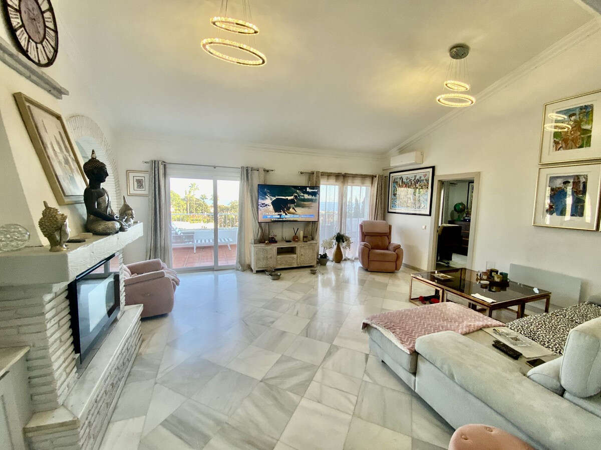 The driveway is extremely spacious and could accommodate several vehicles. This leads to a beautiful entrance to the property.. boasting double doors into a beautiful large light and airy hallway leading to a large lounge boasting hight ceilings, a feature fireplace, two double doors onto a large south facing terrace with incredible sea views. From the Terrace you can access the solarium which has an independent room that would make an additional double bedroom.