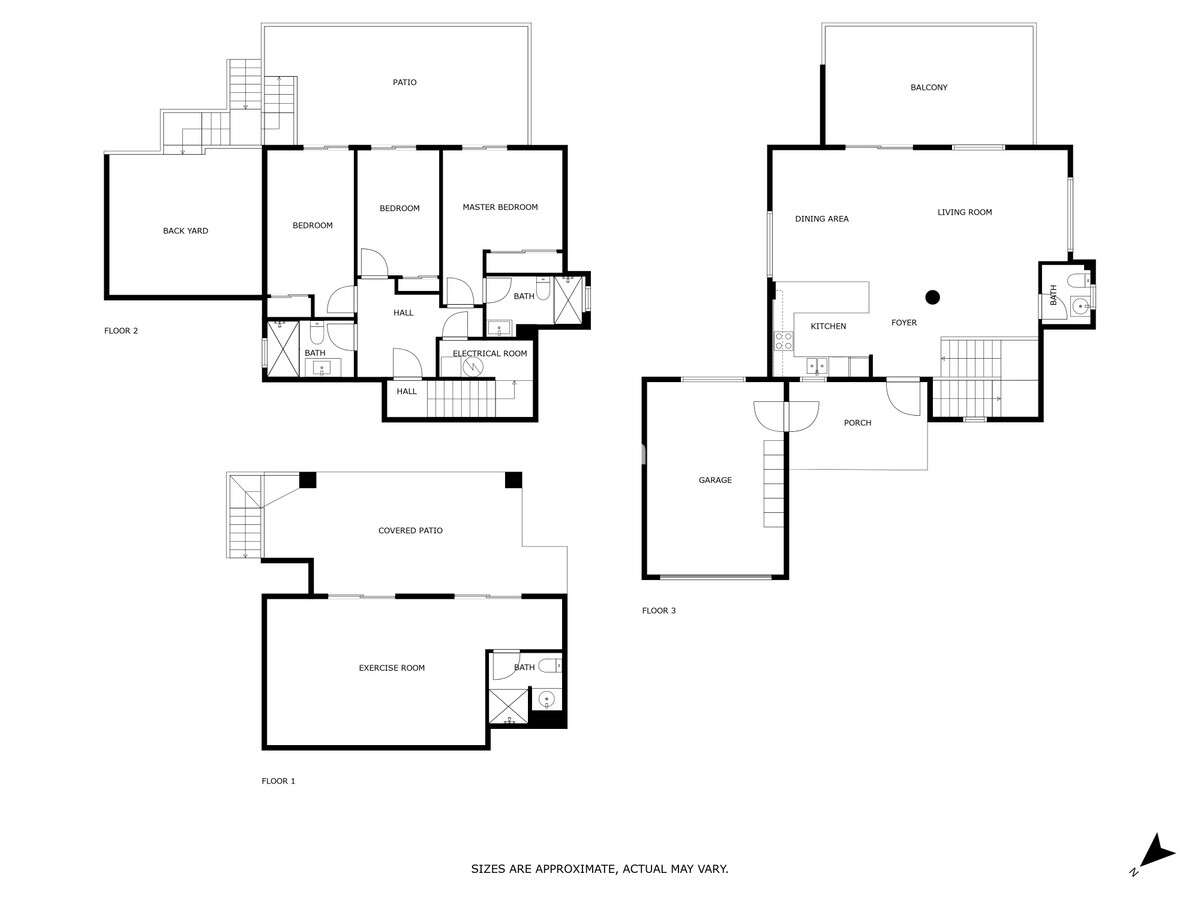 The second floor has three bedrooms and two bathrooms, one of which is connected to the master bedroom. All bedrooms have access to a large terrace.