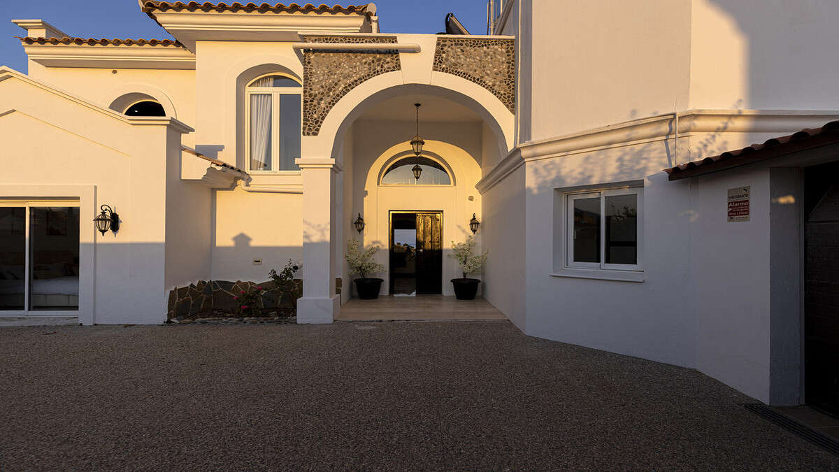Beyond the striking double gates, a cobbled driveway curves towards a private double garage and the grand front entrance. Step inside and you are greeted by a bright hallway with a soaring ceiling, framing your first glimpse of the lifestyle that awaits: sunlight spilling through wide glass doors, the terrace stretching before you, and the showpiece infinity pool melting into the horizon.