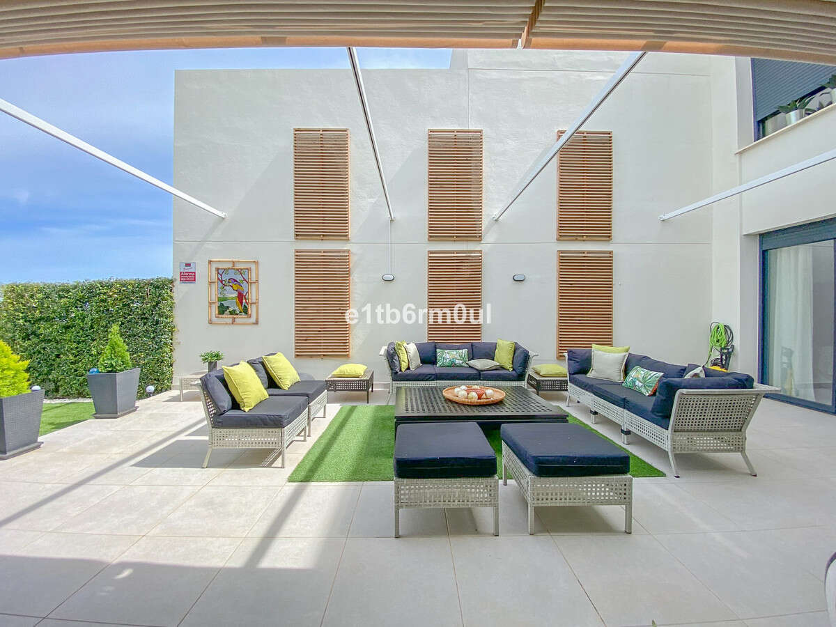 This luxury house with spectacular sea views is located in Terrazas de Cortesin near the beautiful town of Casares Playa, Málaga. It is 30 minutes to Casares Pueblo and only a few minutes to the beach. This property offers ample space for modern living. Bright and spacious living room with floor-to-ceiling windows that lead out onto a spectacular terrace perfect for relaxing and entertaining. The fully fitted kitchen is equipped with modern appliances, making it a delight for cooking enthusiasts, and has a separate utility room. The two bedrooms on the first floor are en-suites and enjoy spectacular open views, the master bedroom has a private terrace, the third en suite bedroom is conveniently found on the ground floor.