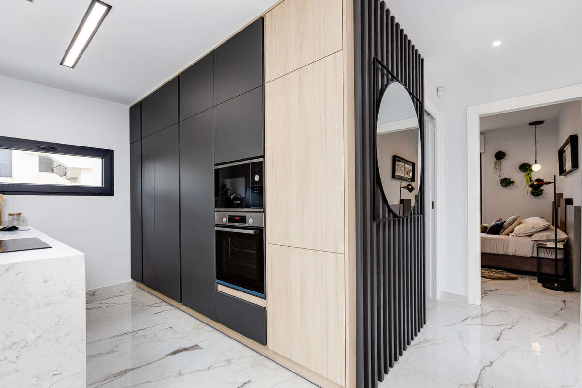 The residential complex is made up of 84 modern-style bungalows located in Lo Marabú. 2 bedrooms and 2 bathrooms distributed on one floor. Ground floor with garden or upper floor with private solarium.