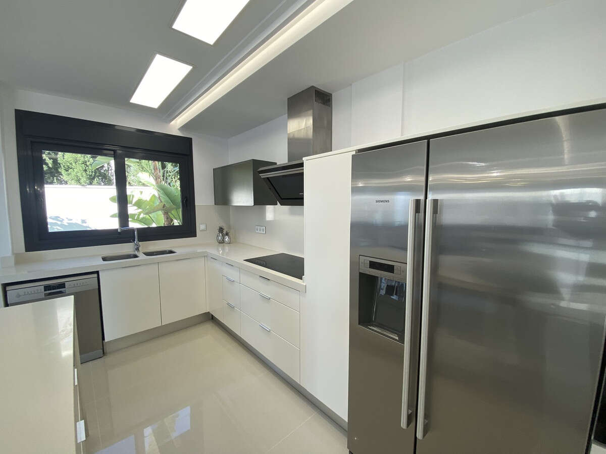 The residence is thoughtfully equipped with high-quality amenities such as motorized sofas, brand-new mattresses, a steam oven with pyrolysis, and a combo fridge that dispenses both normal and crushed ice.
