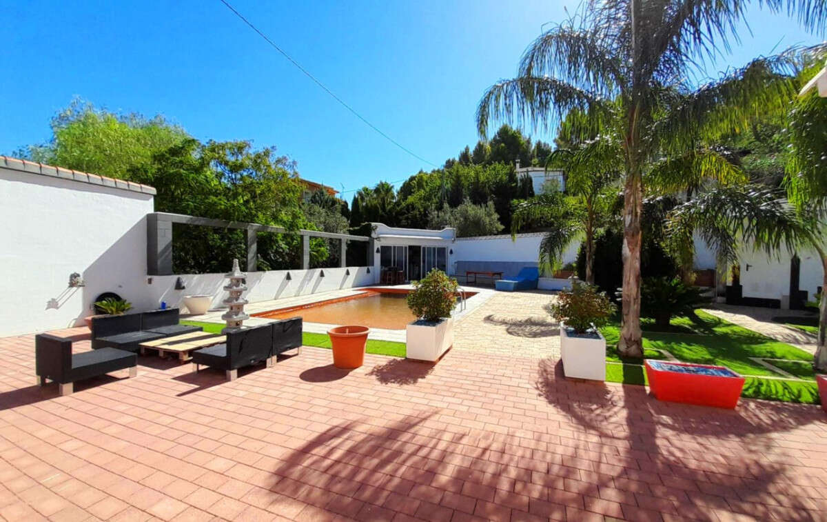 This spacious and bright recently refurbished villa is located in a very quiet location in the Montgó area and has 4 bedrooms and 3 bathrooms plus an outside toilet next to the swimming pool.