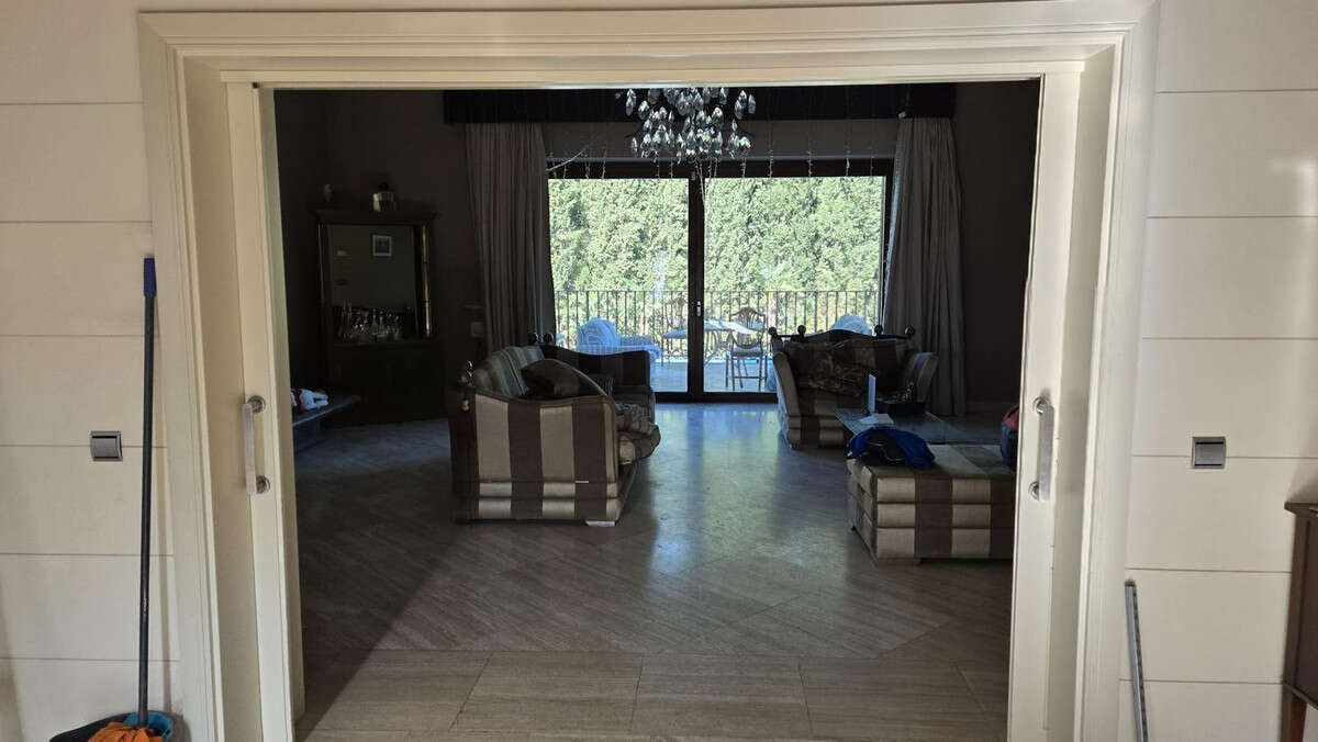 The villa sits on a private plot featuring a garden and a swimming pool, perfect for enjoying the Mediterranean climate. Additional benefits include a garage for two cars and multiple terraces.