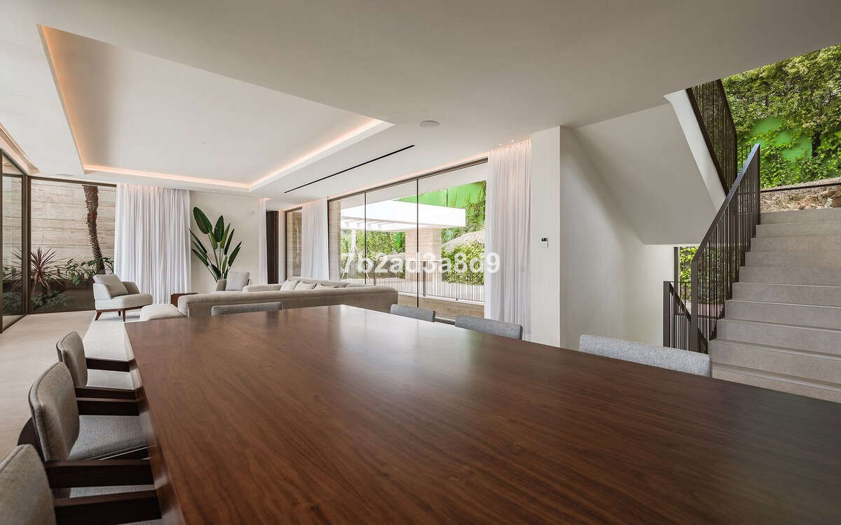 Enjoying a prime corner plot with its own cul de sac entrance, this beautiful, new villa boasts spectacular design and finishing. The features include a total of over 900m2 of build over 3 floors plus a glorious rooftop solarium. In addition to the exceptional living area, the property also has state of the art domotics, underfloor heating a gymnasium and spa and its own wine cellar. Interior parking for 3 cars and car ports for 2 more add to the privacy and security. The villa has just been completed and is ready to move in